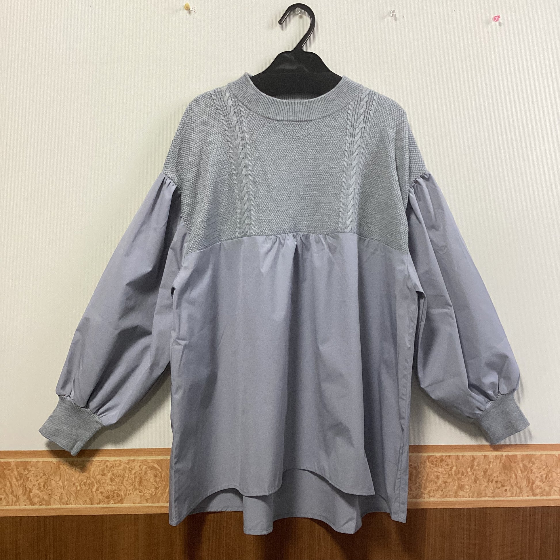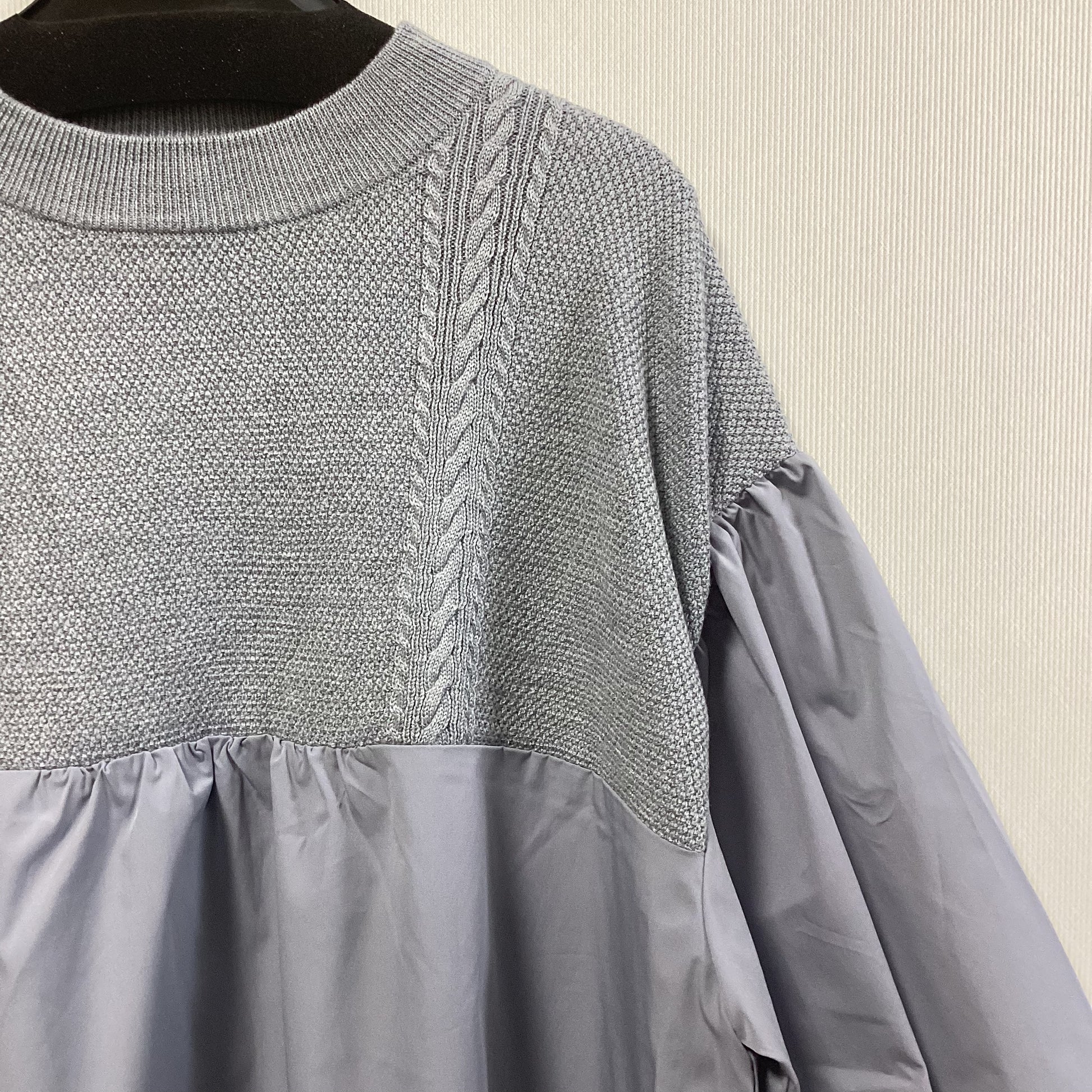 ニットとブラウスの異素材を組み合わせた大人可愛いドッキングプルオーバーです。