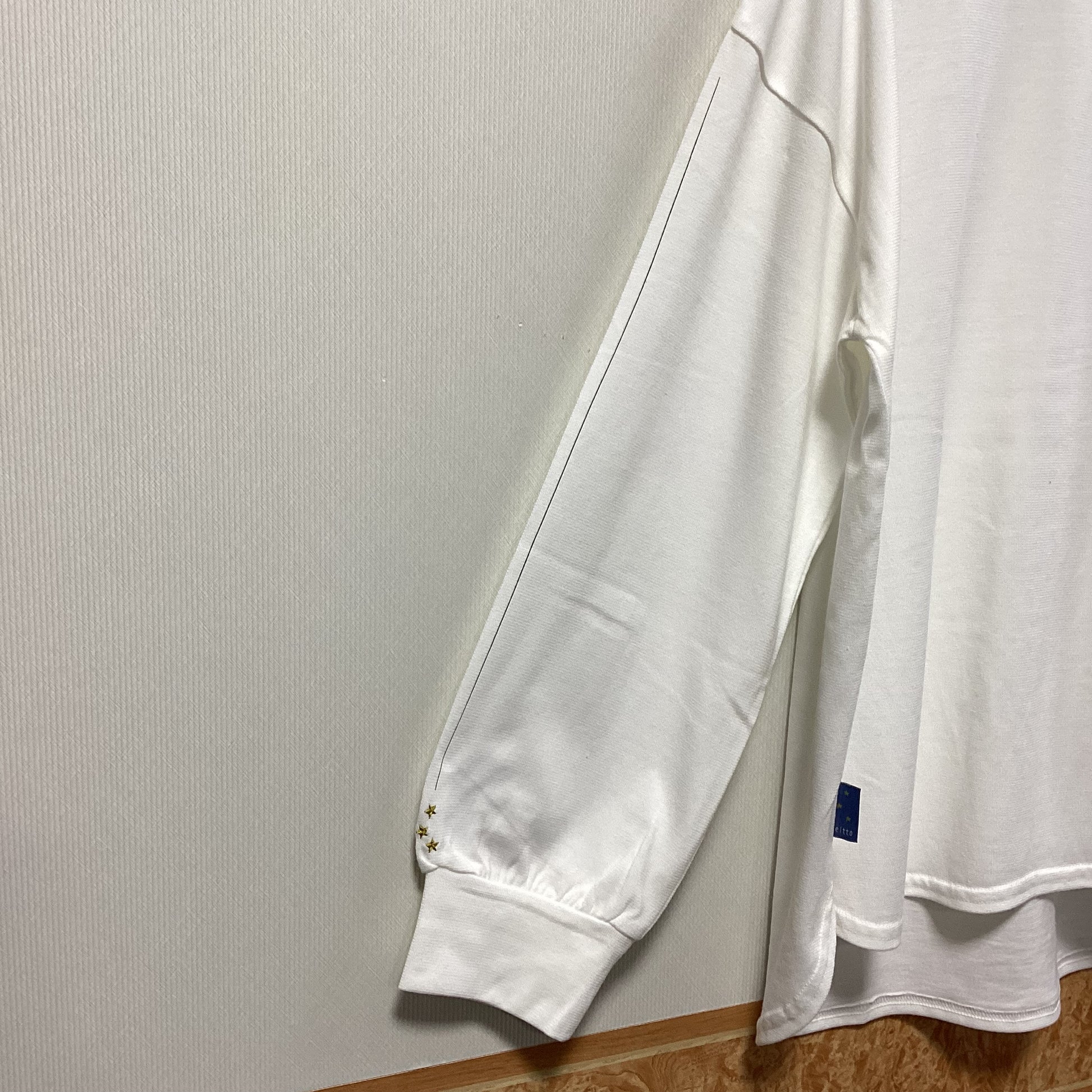 左胸にロゴ刺繍と袖に流れ星をイメージしたライン入りの長袖プルオーバーです。
