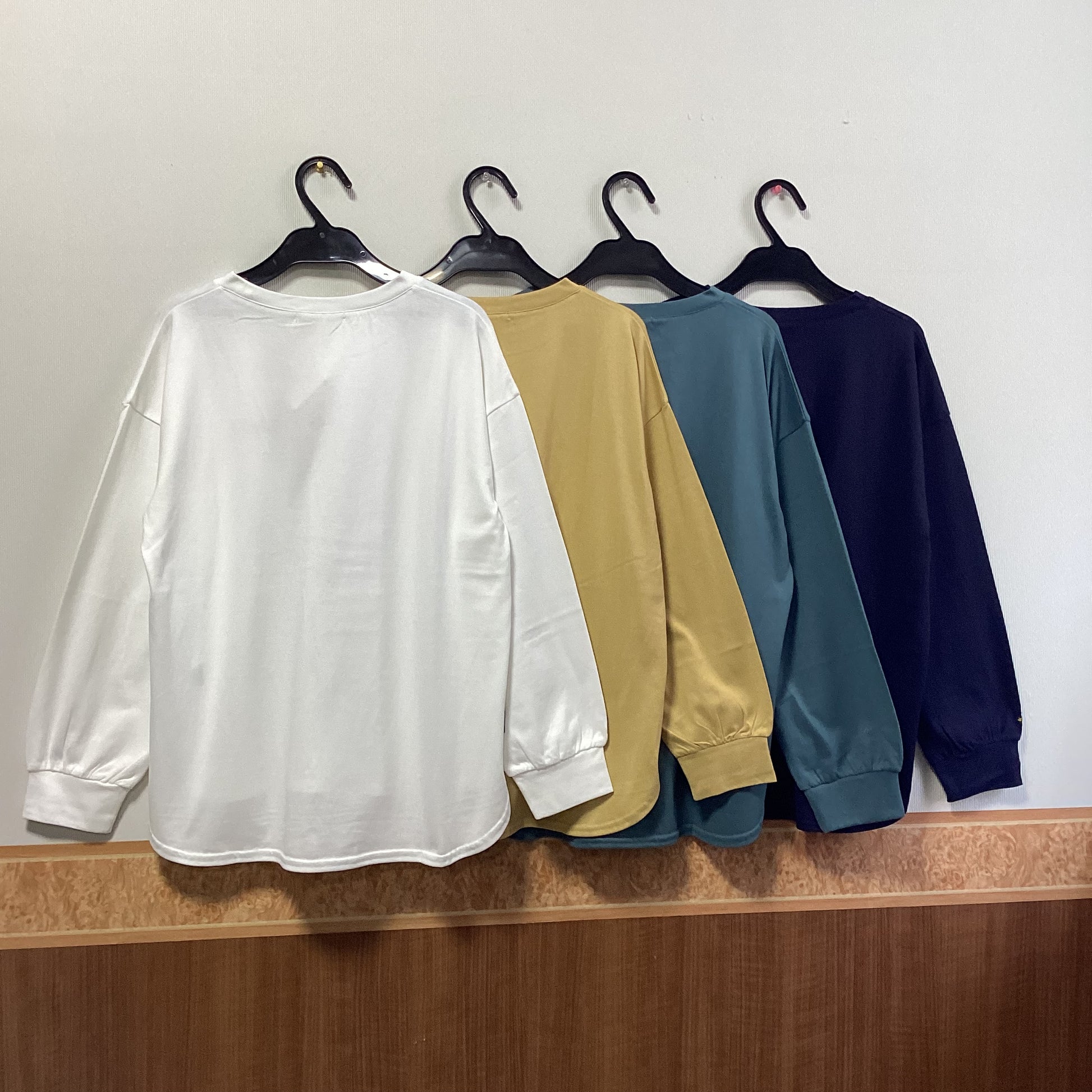 肩落ち&ゆったりシルエットで着丈は前後差のあるデザインです。