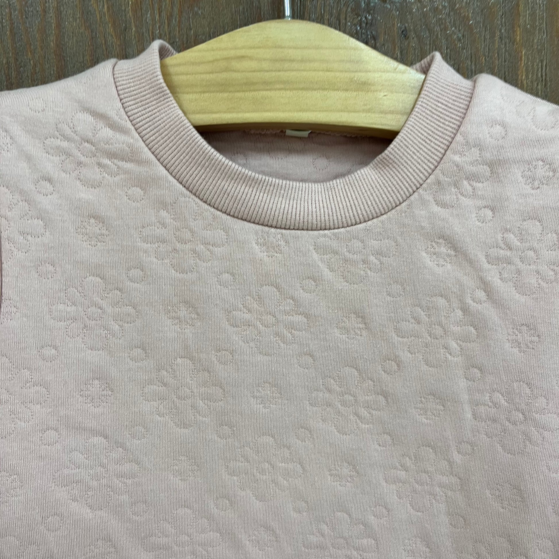 お花柄の刺繍が可愛らしい、スウェットのワンピース。