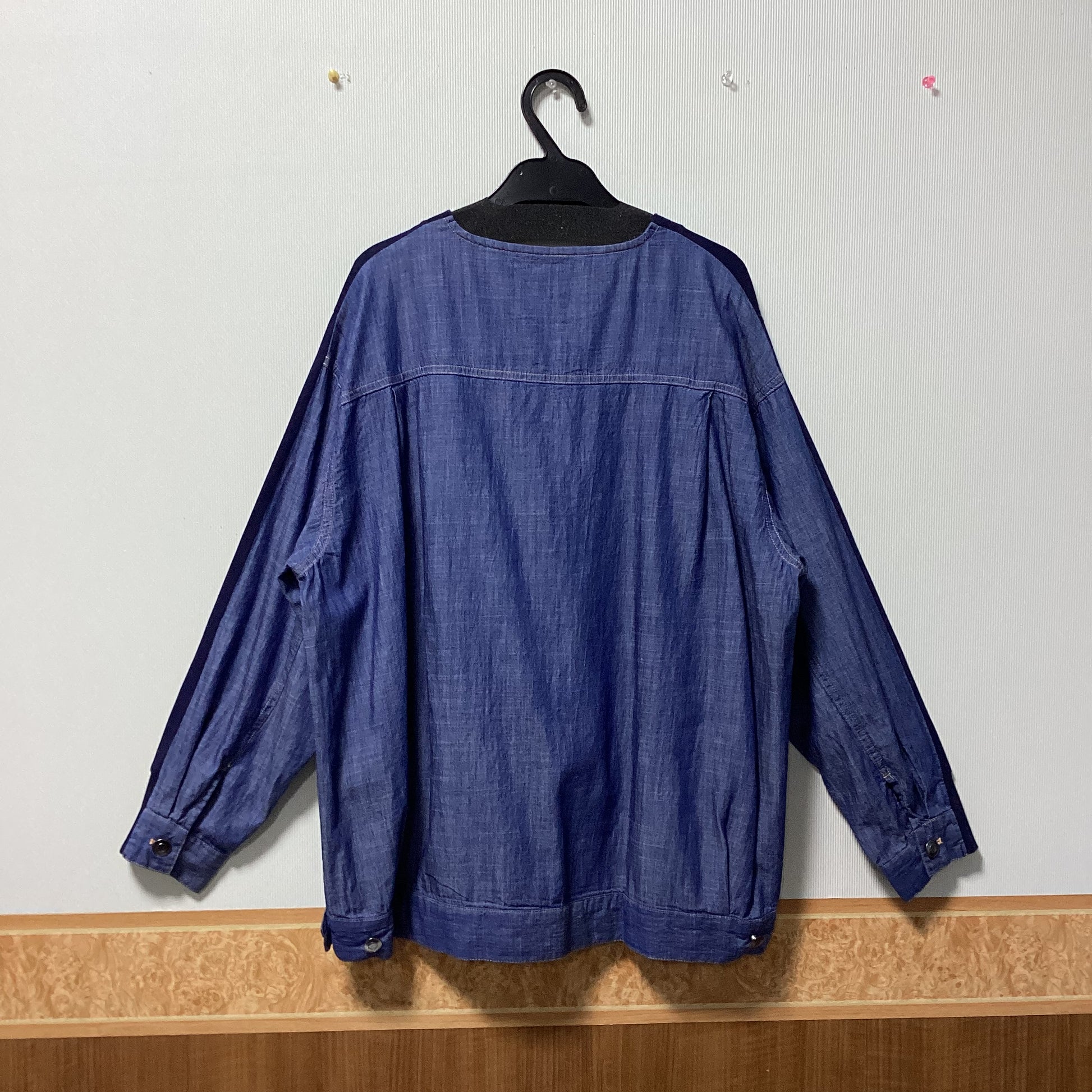 伸縮性がありやわらかいTシャツ生地と薄手のデニム生地を組み合わせたプルオーバーです。