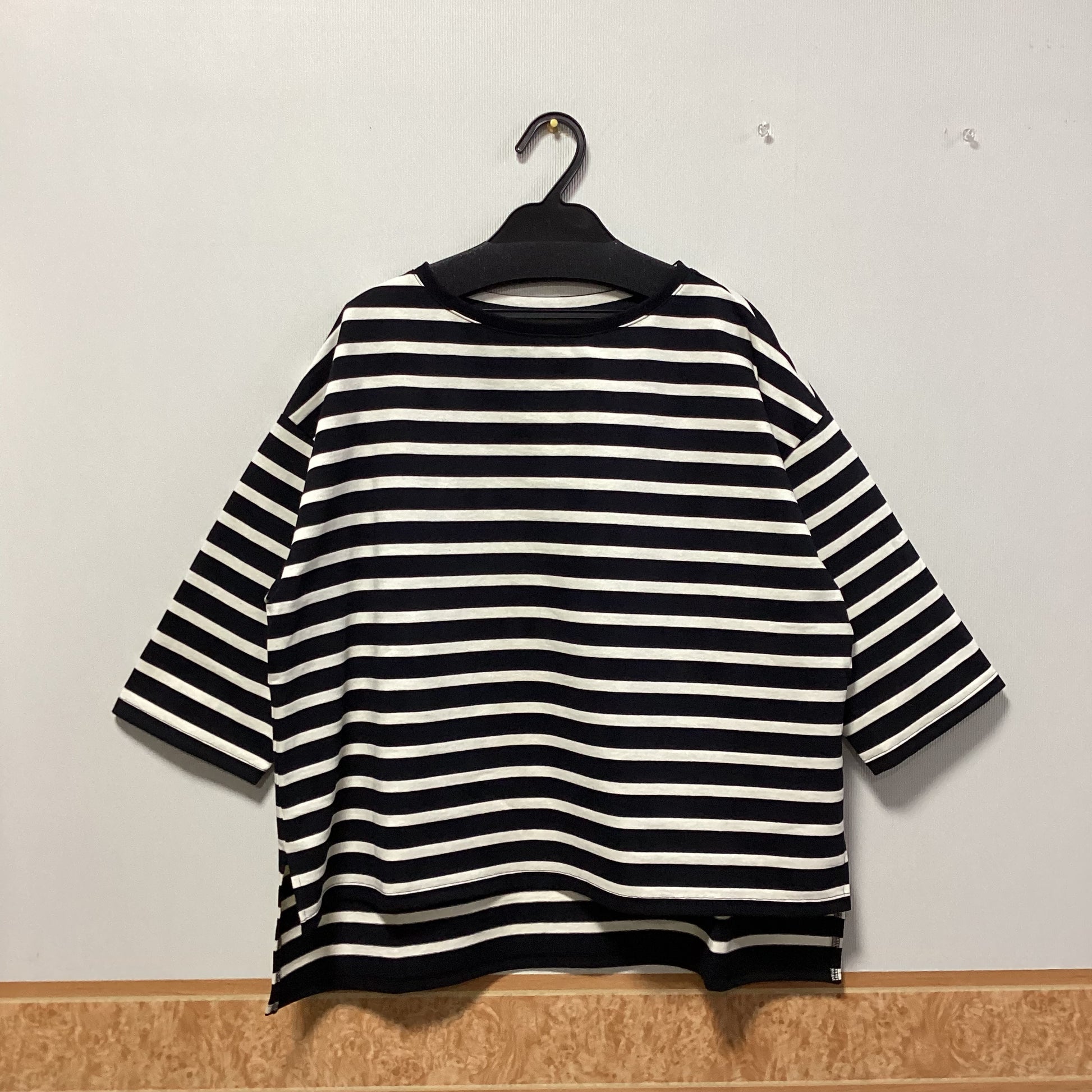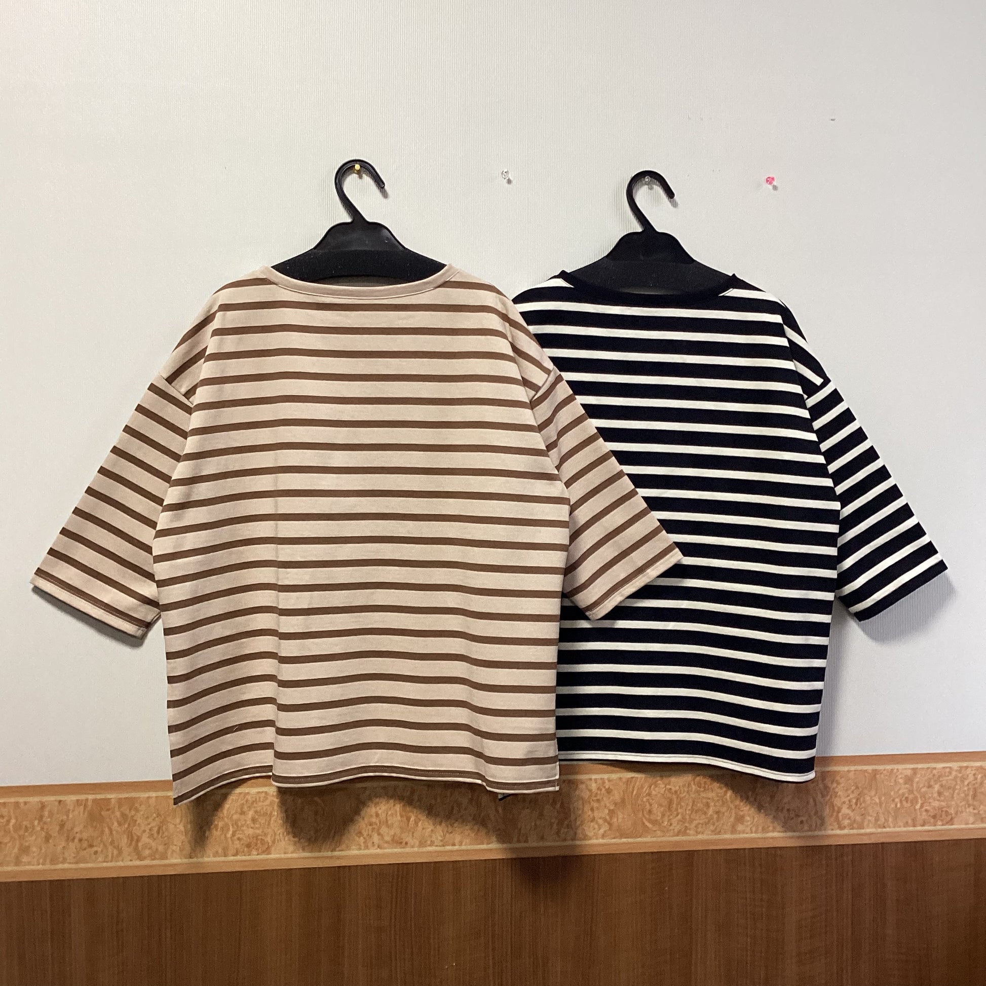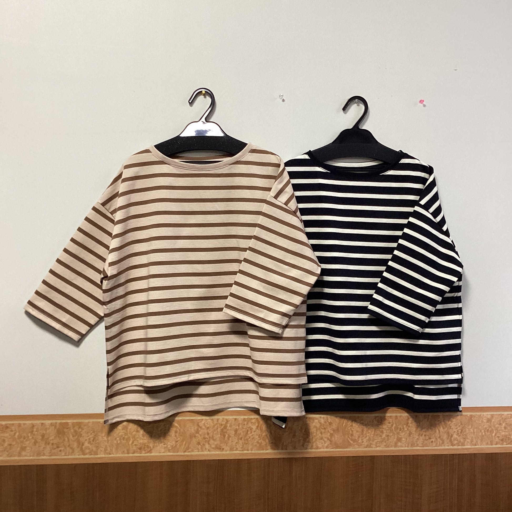 ナチュラルな風合いのボーダー柄で、肩落ち&身幅も広くゆったり着用できます。