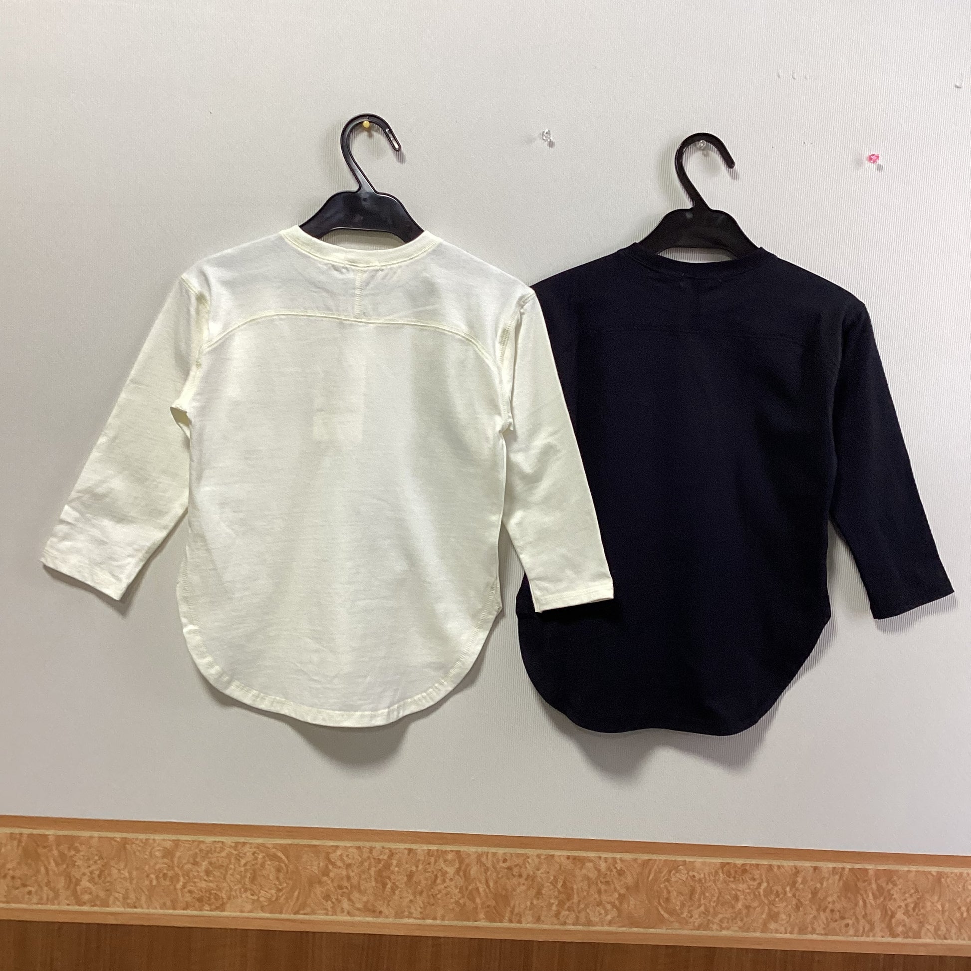 前後差のある着丈で、本体はほどよい厚みとなめらかな肌触りの綿100%を使用しています。