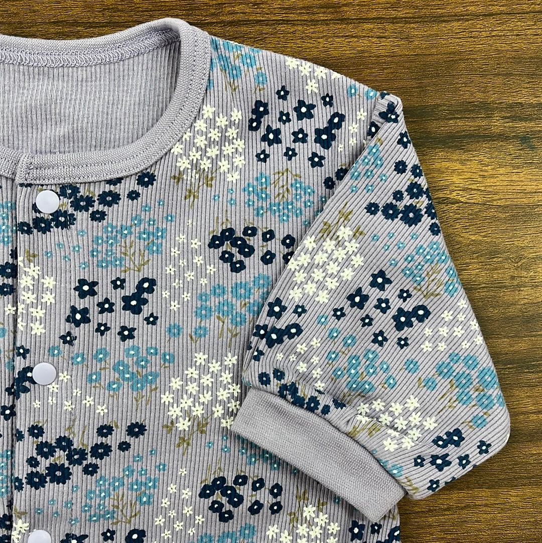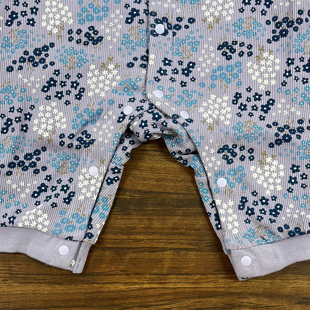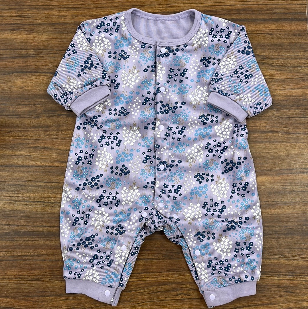 可愛い小花が集まったテレコ素材のカバーオールです。女の子らしいカラーで贈り物にもオススメです。