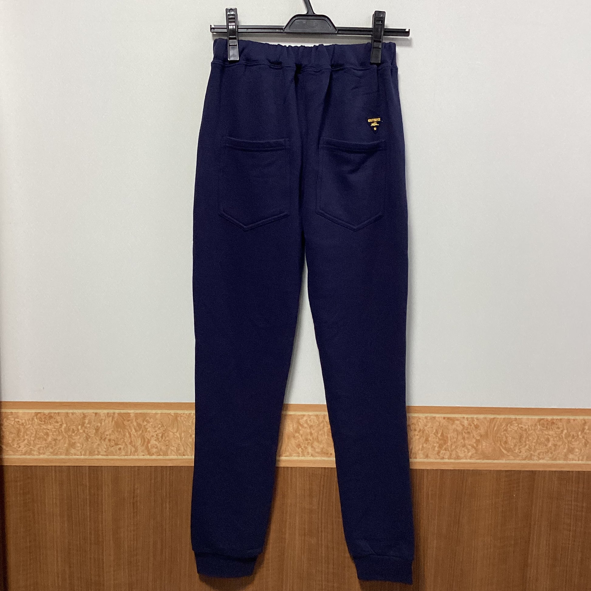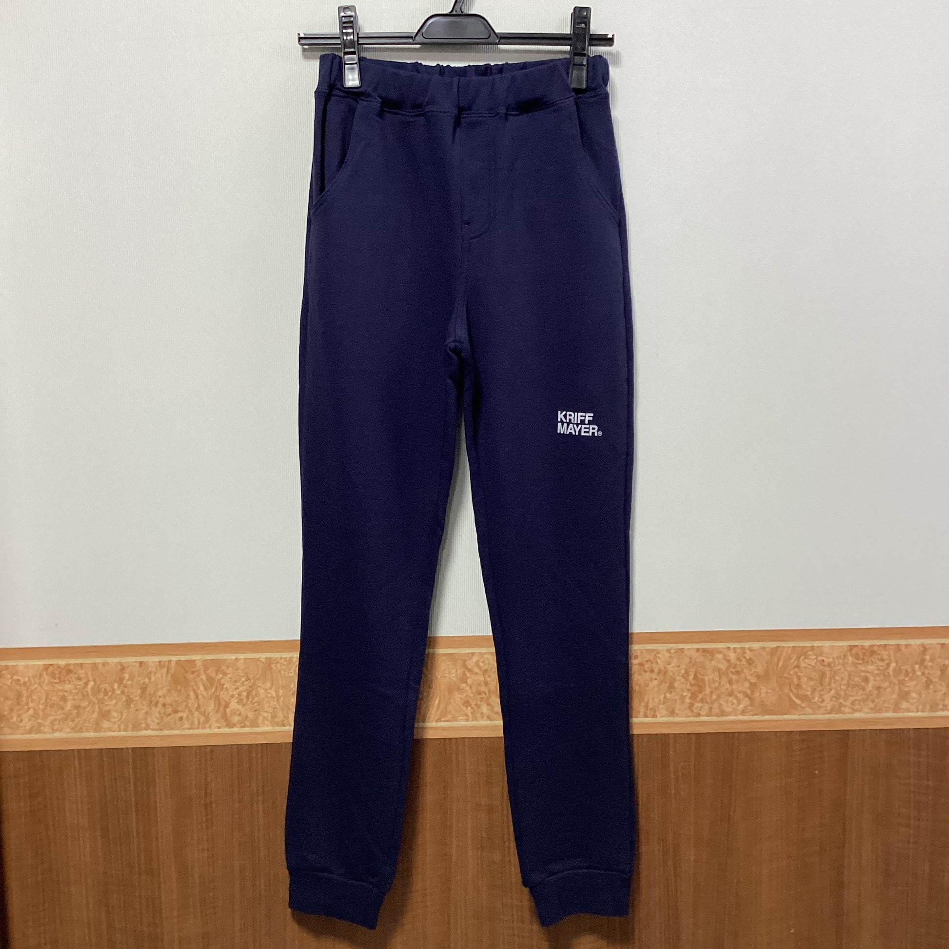 左太もものロゴプリントと右後ろポケット上のワッペンがアクセントのスウェットパンツです。
