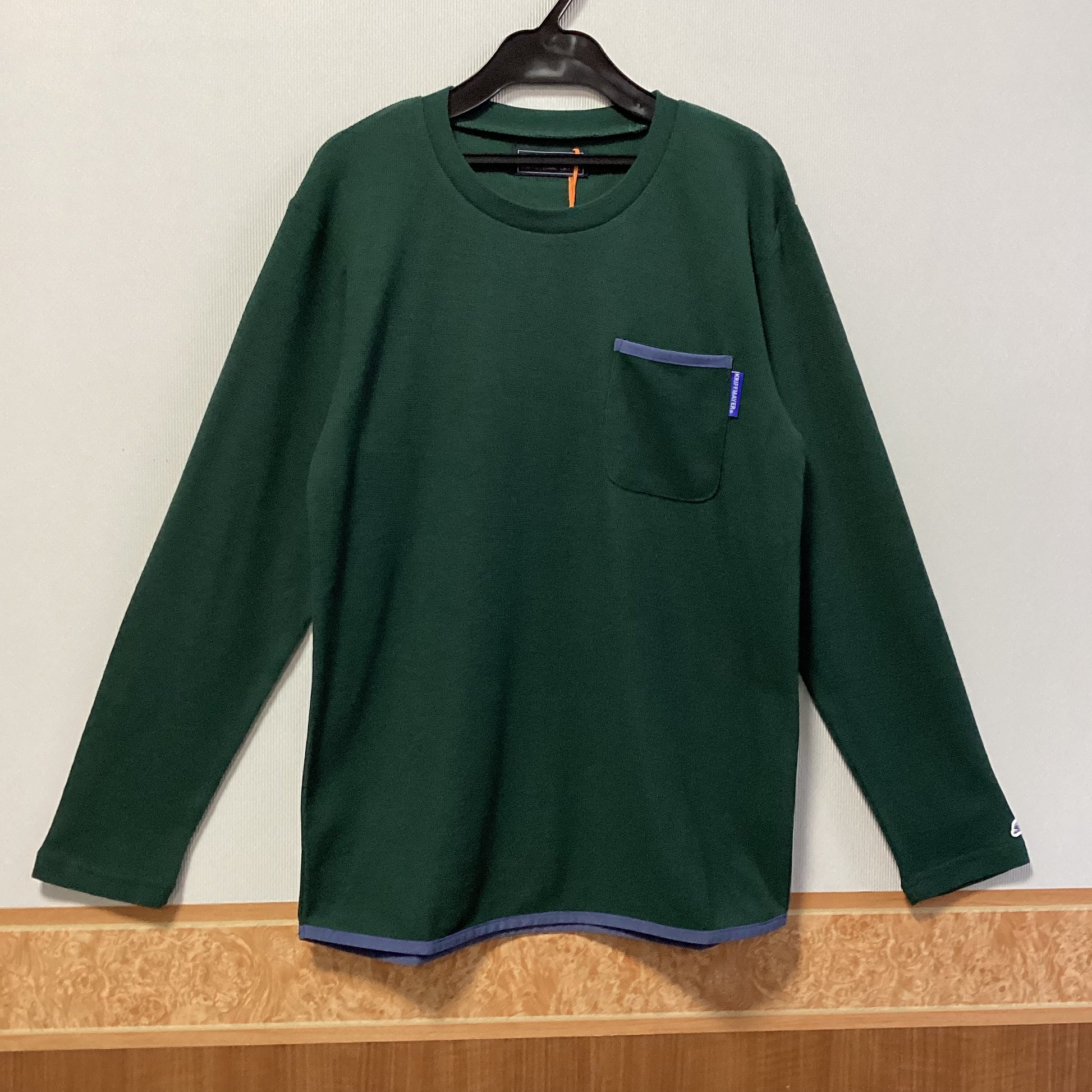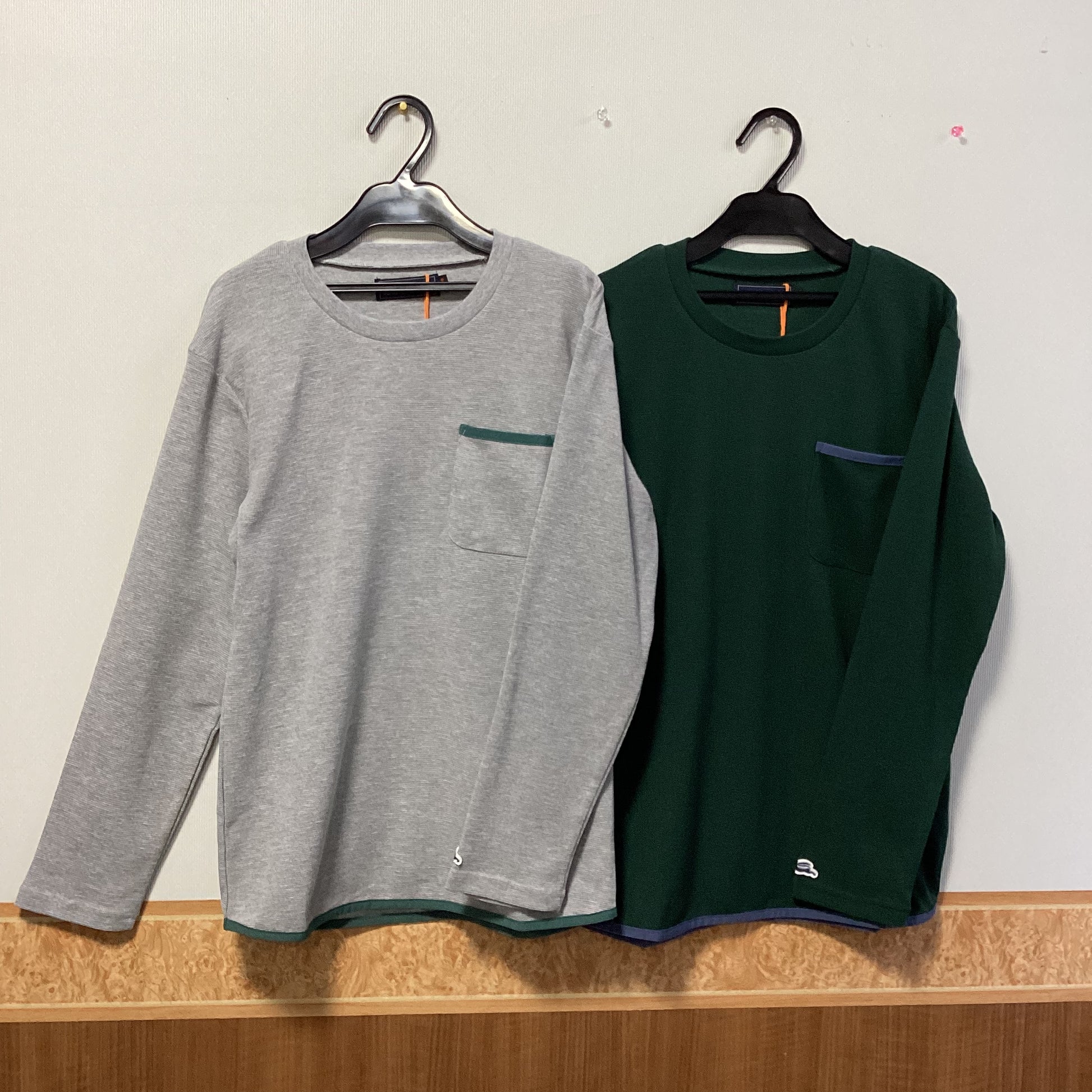 左胸ポケット付きで、ポケットと裾のワンポイントラインがアクセントの長袖Tシャツです。