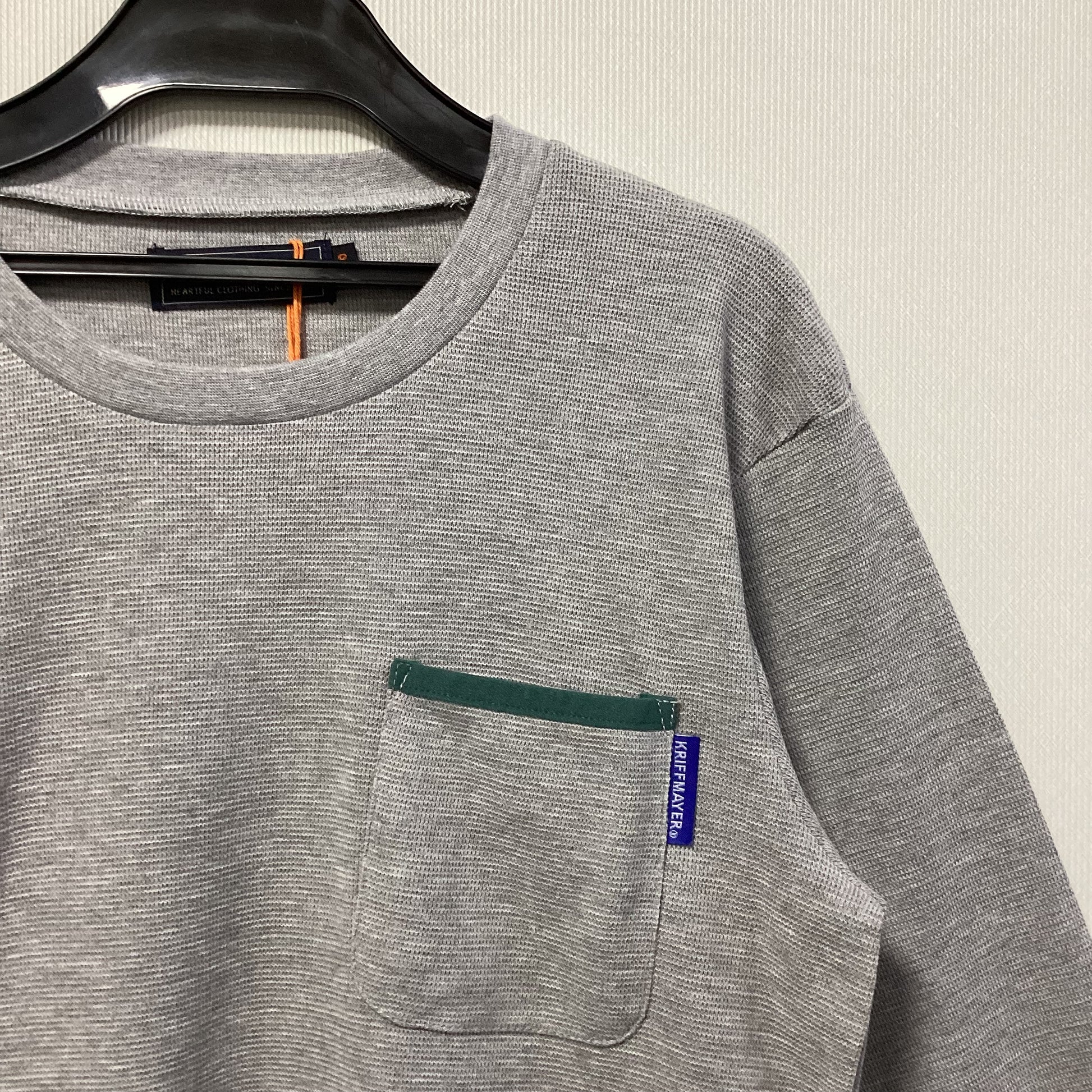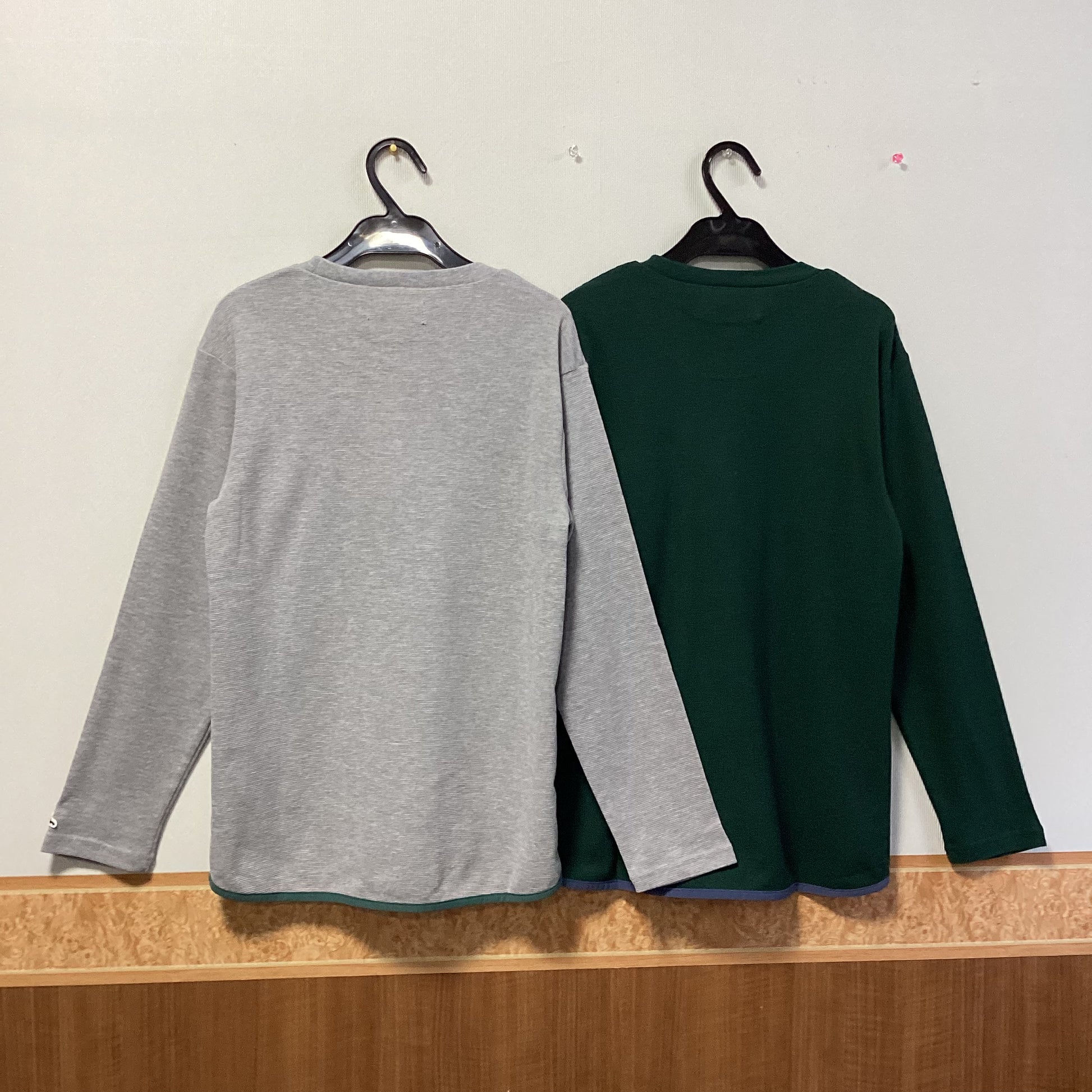 表は目が細かいワッフル生地、裏はデコボコ感がなくサラッとした肌触りで着心地の良いアイテムです。