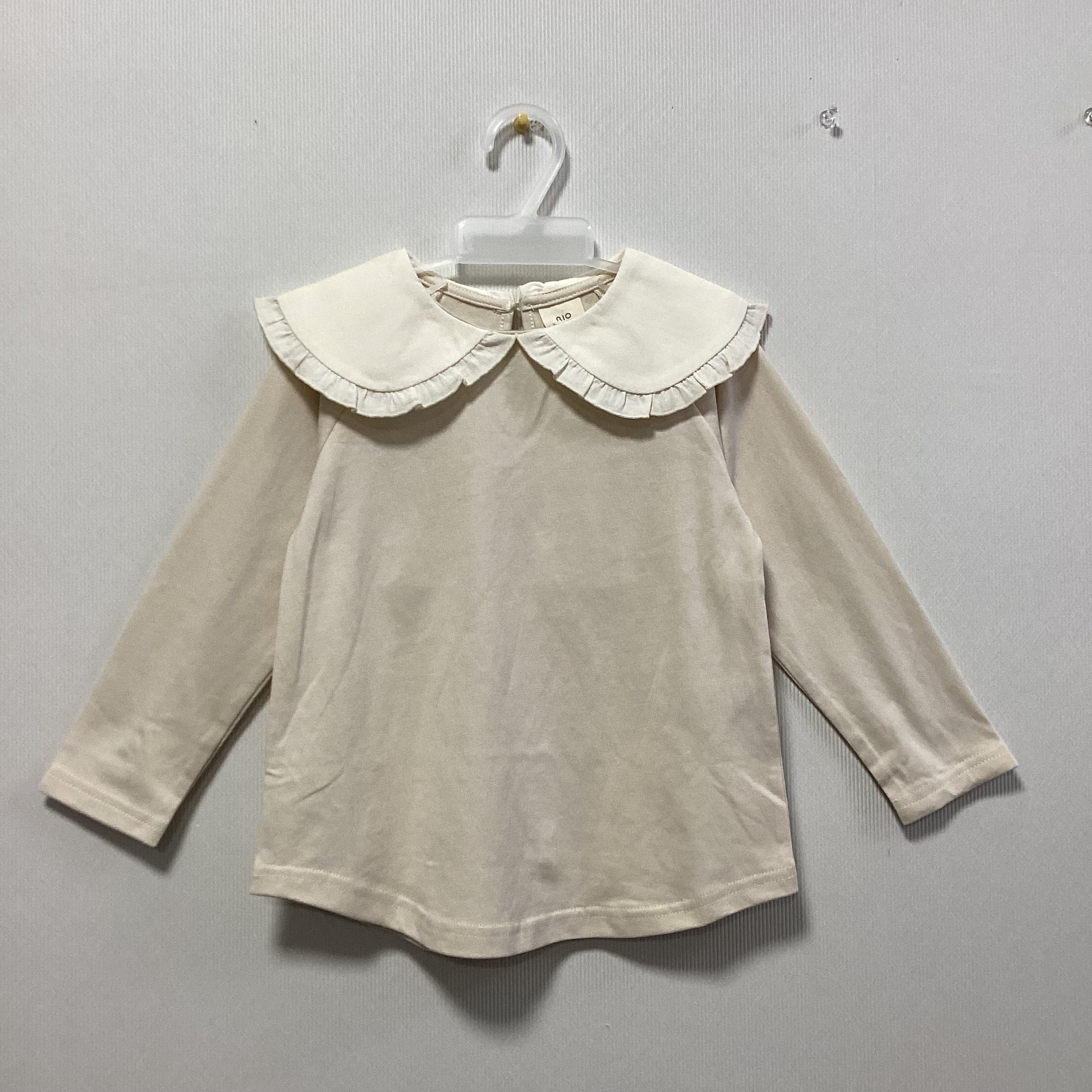 大きなフリルカラーがポイントの長袖Tシャツです。