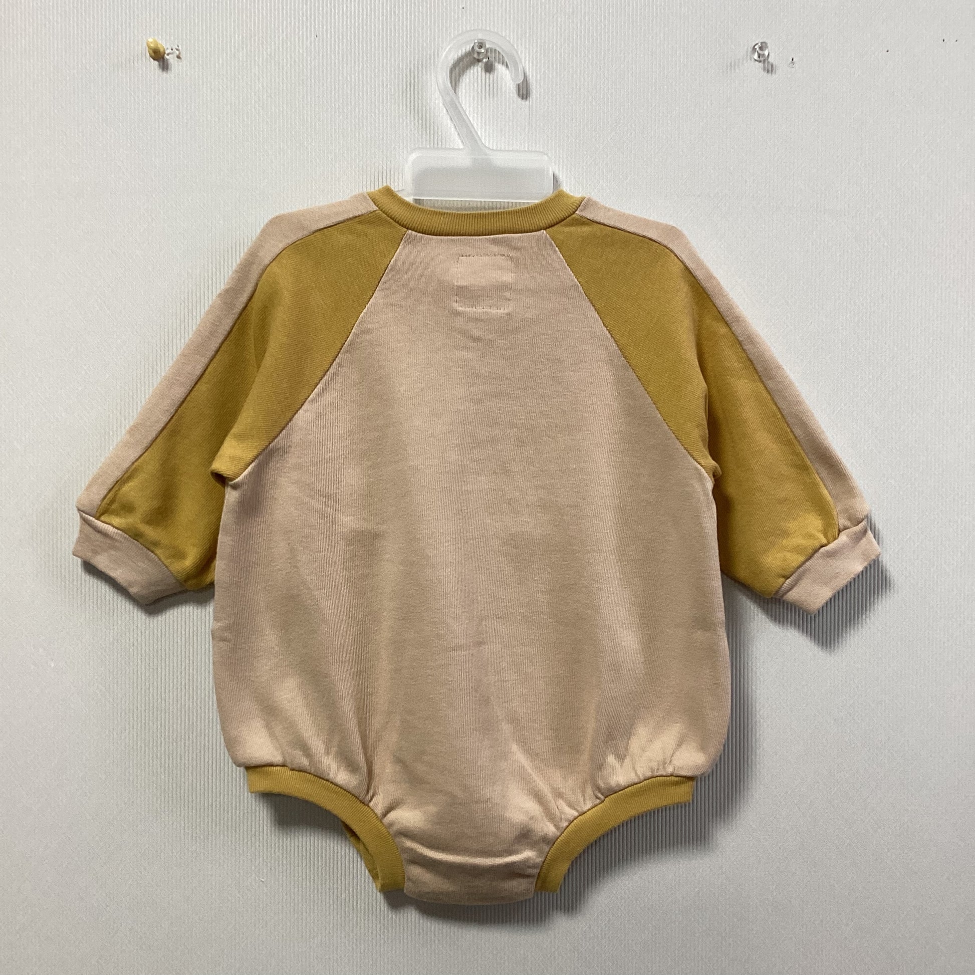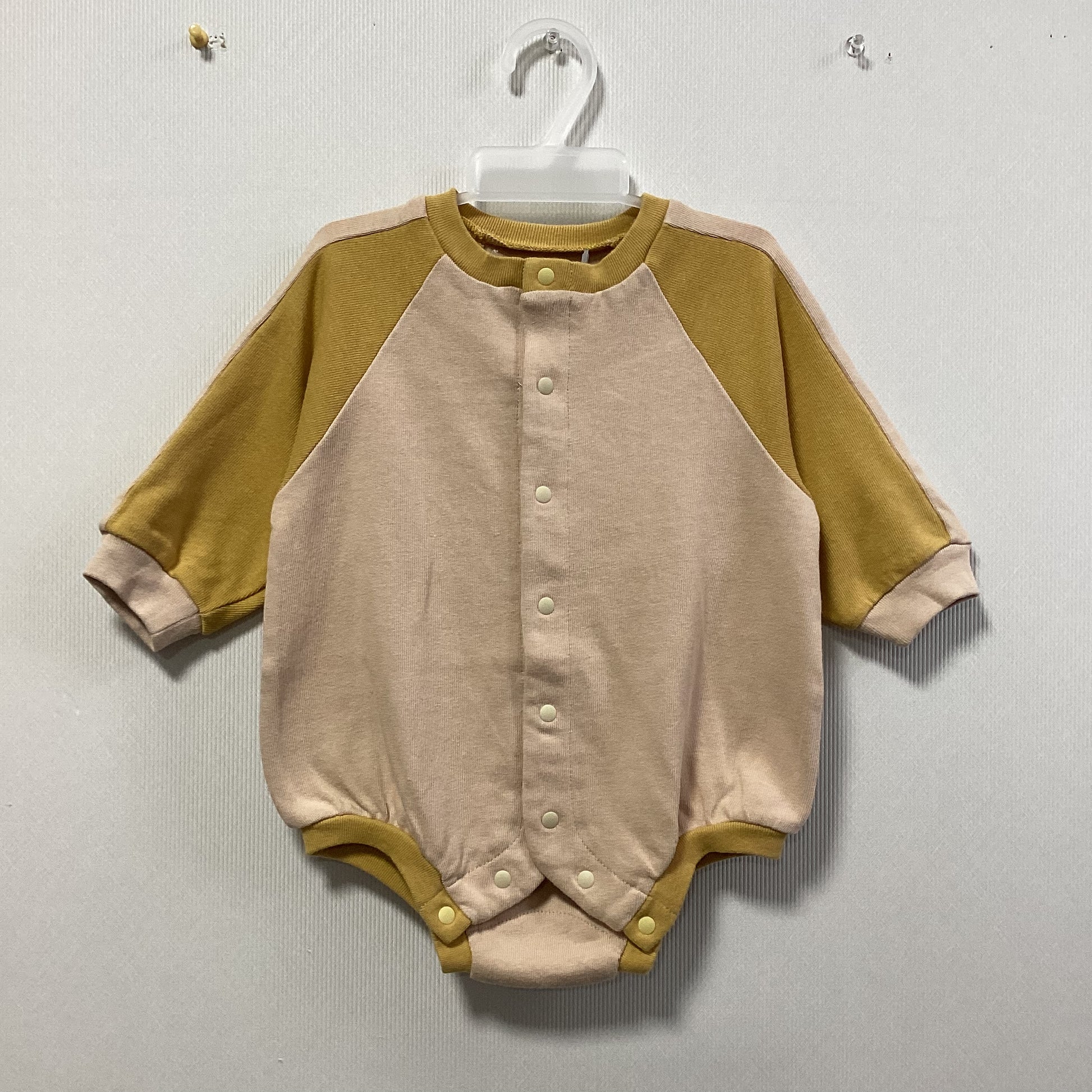 スナップボタン付きで前開きにできる長袖ロンパースです。