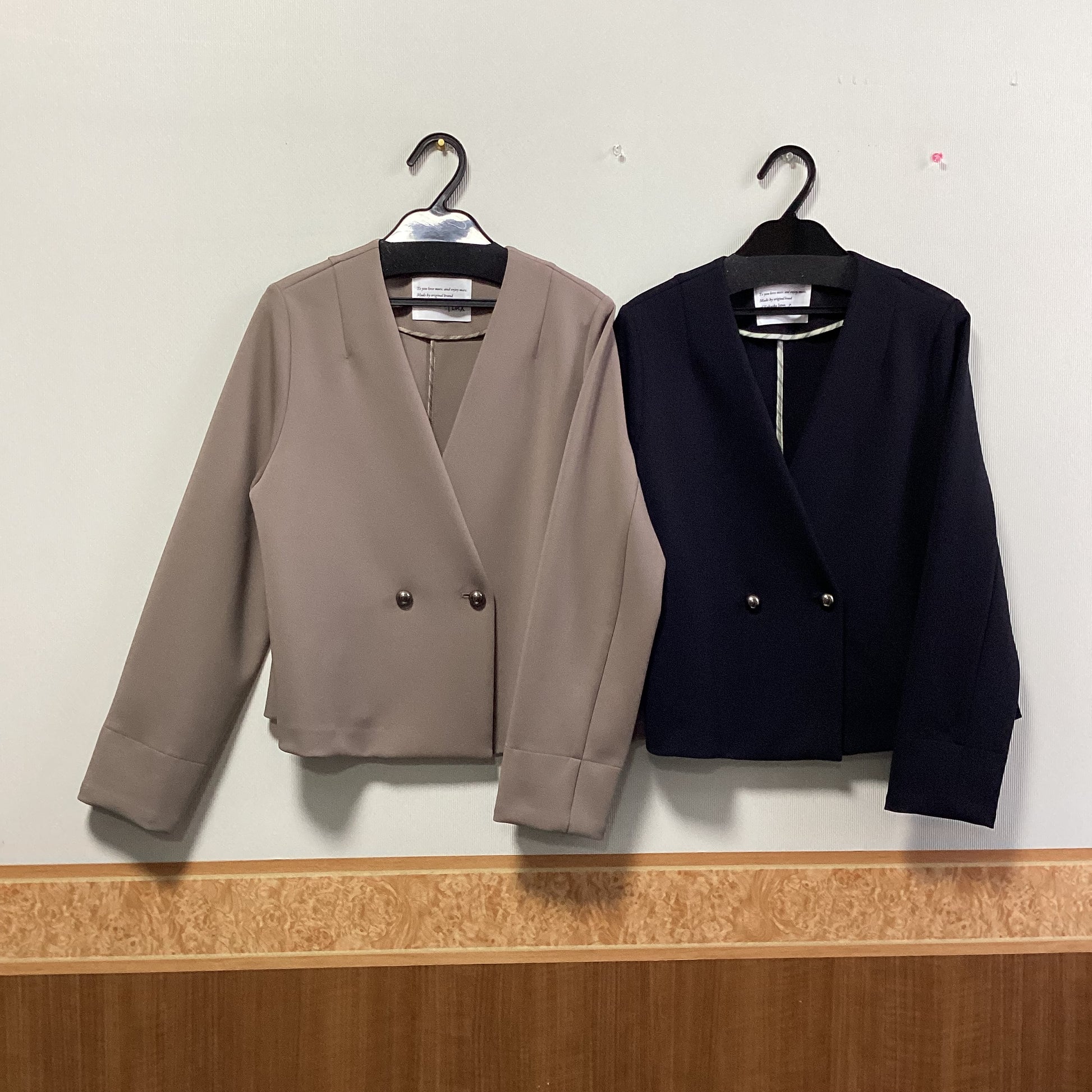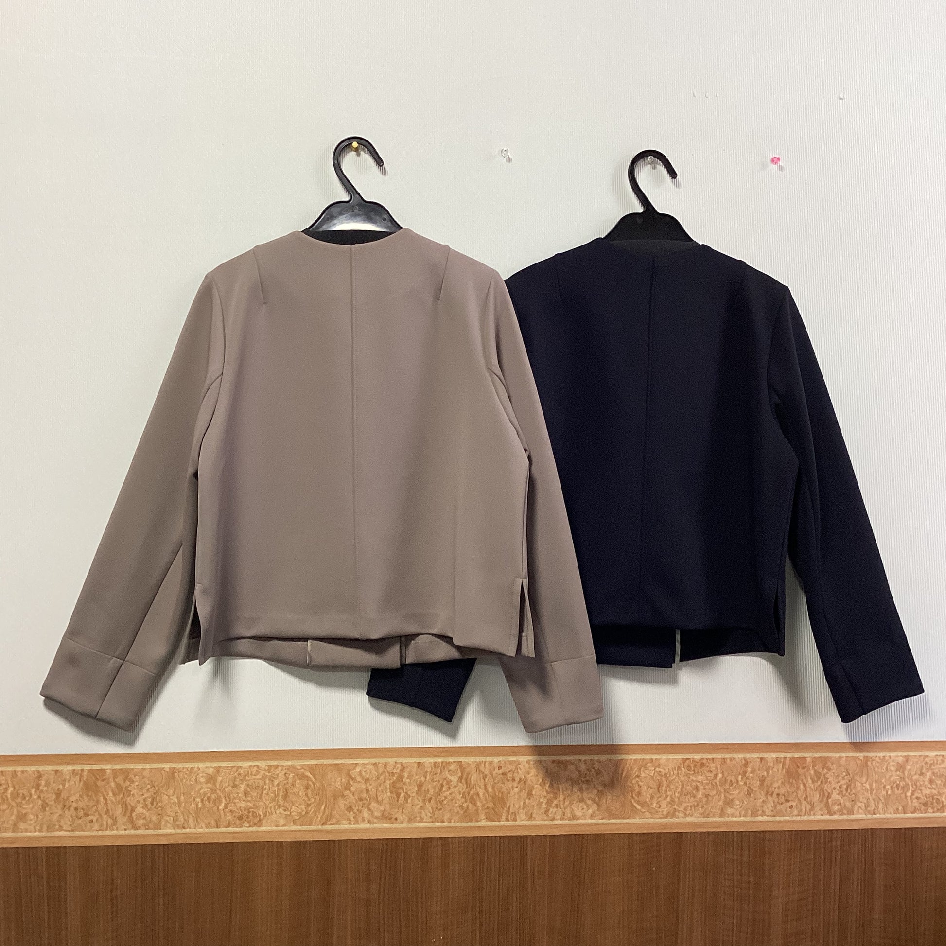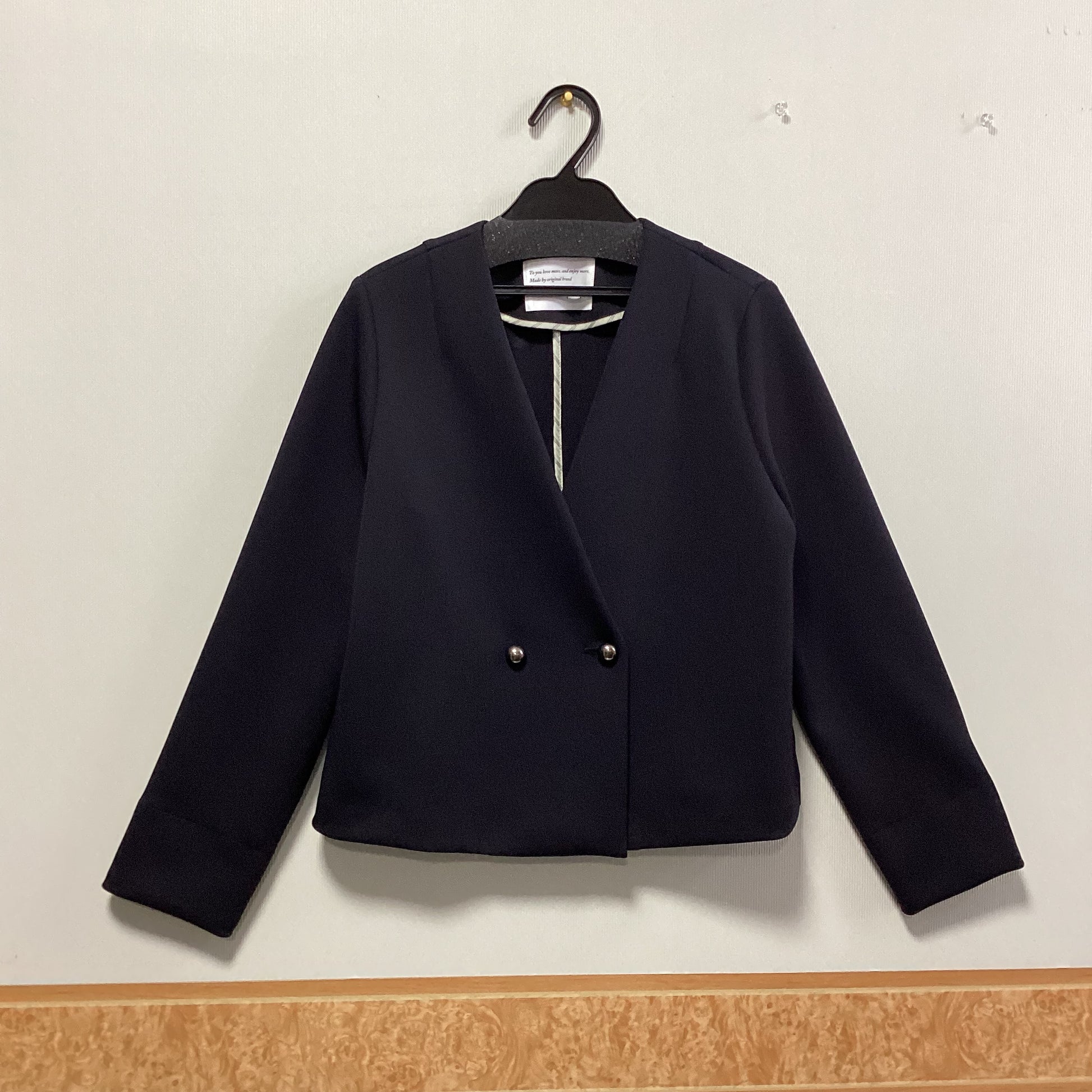 ほどよい光沢感ととろみのある素材を使用したノーカラージャケットです。