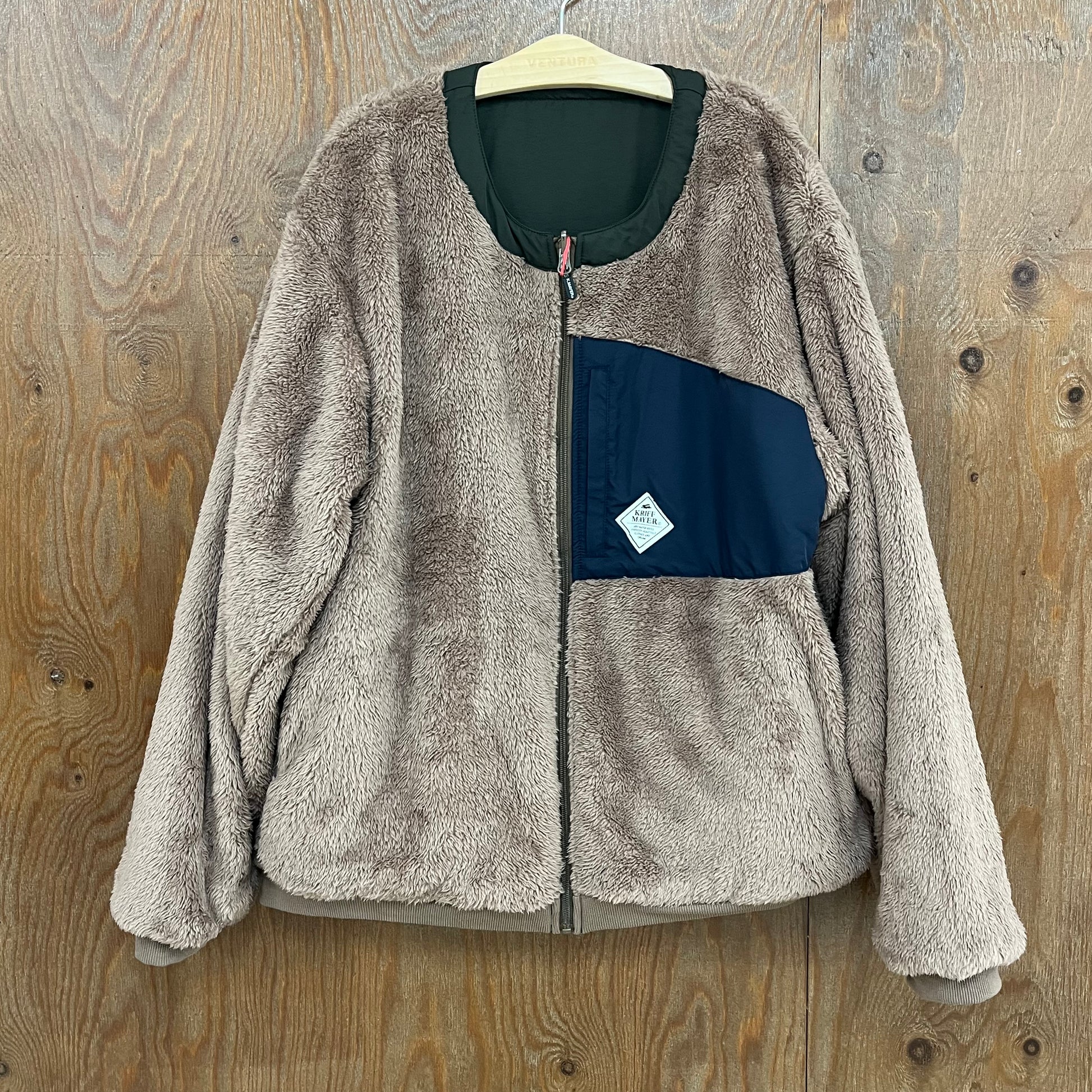 ナイロン素材とボア素材を使用したリバーシブルのアウターです。その日の気分や、合わせるアイテムによって楽しめる、そんな1枚です。軽くて暖かく着用できるオススメアイテムです。