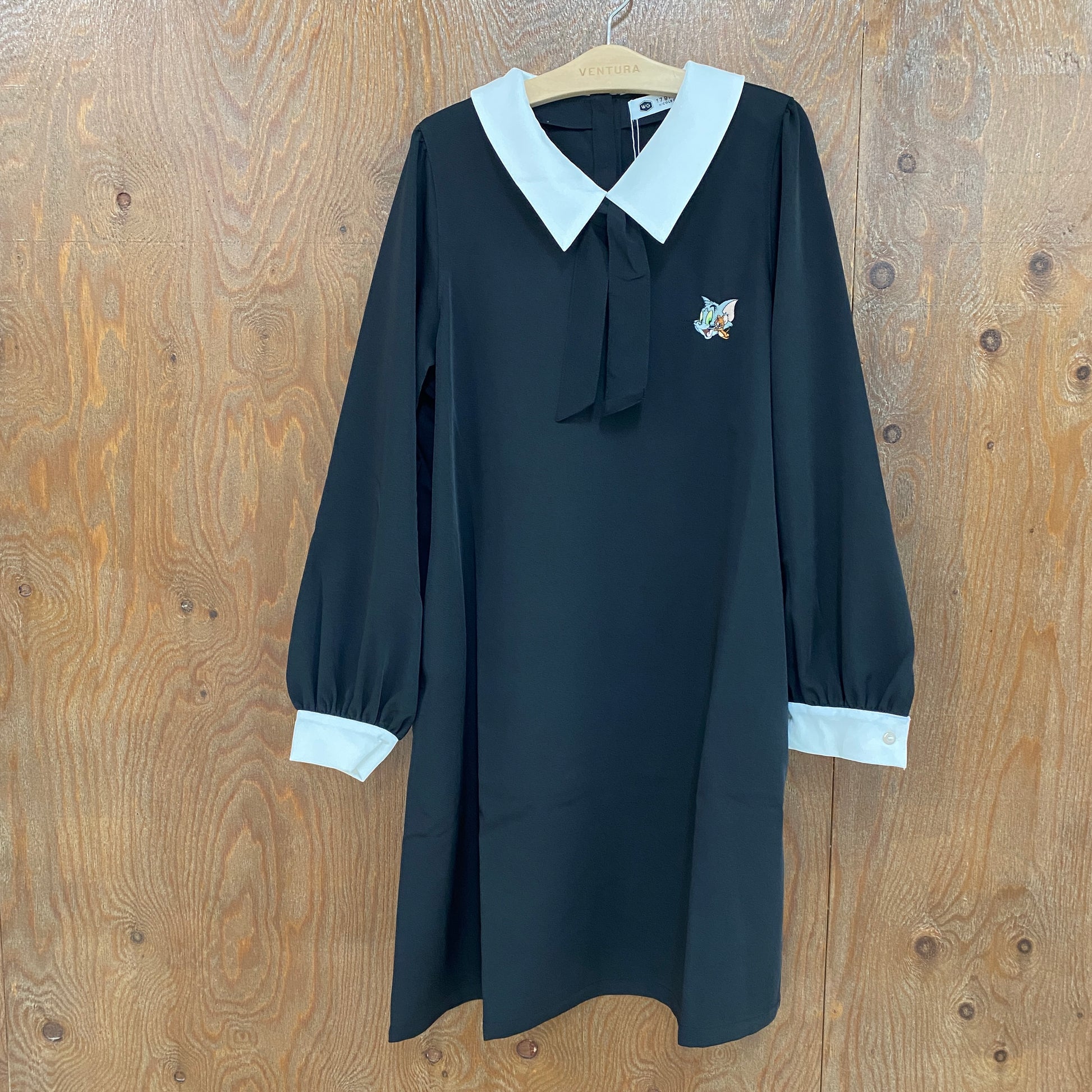 トムとジェリーのワンポイント刺繍がポイントになったAラインワンピース。