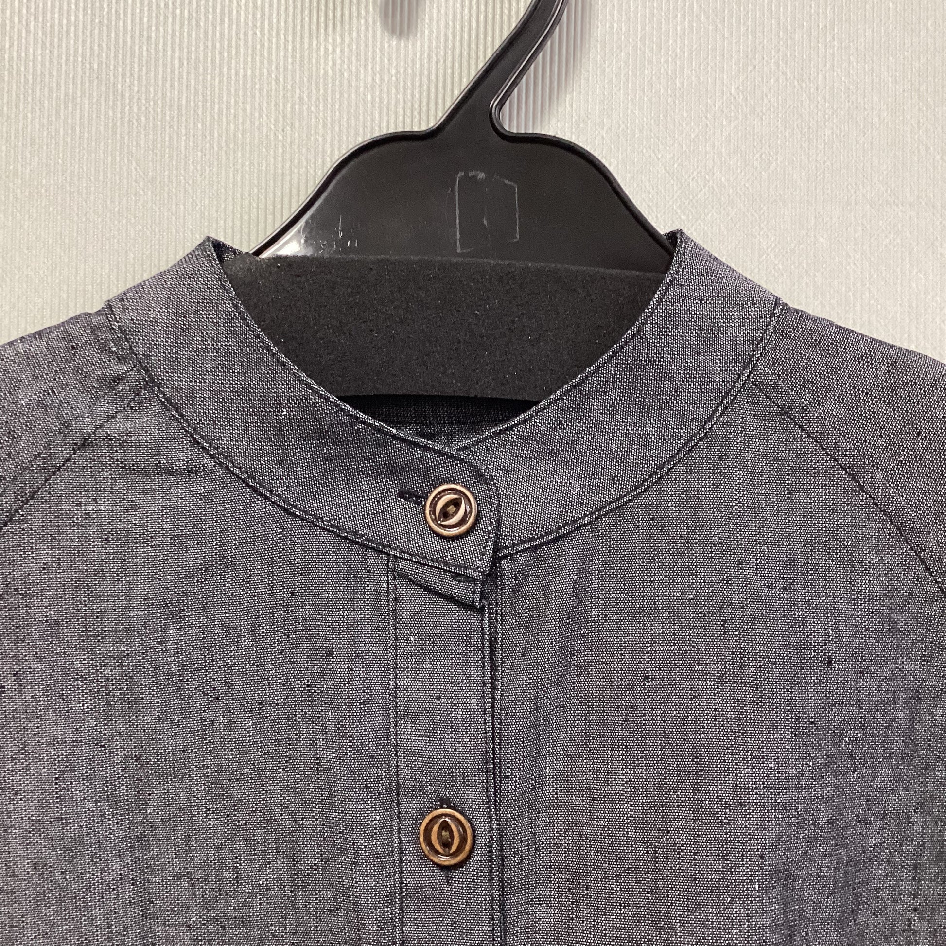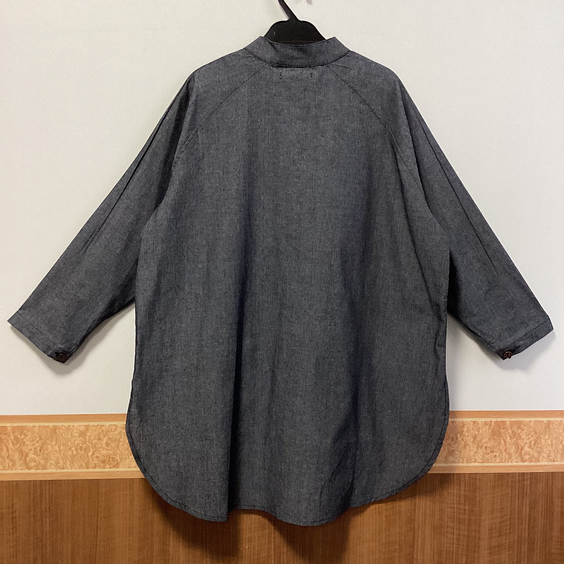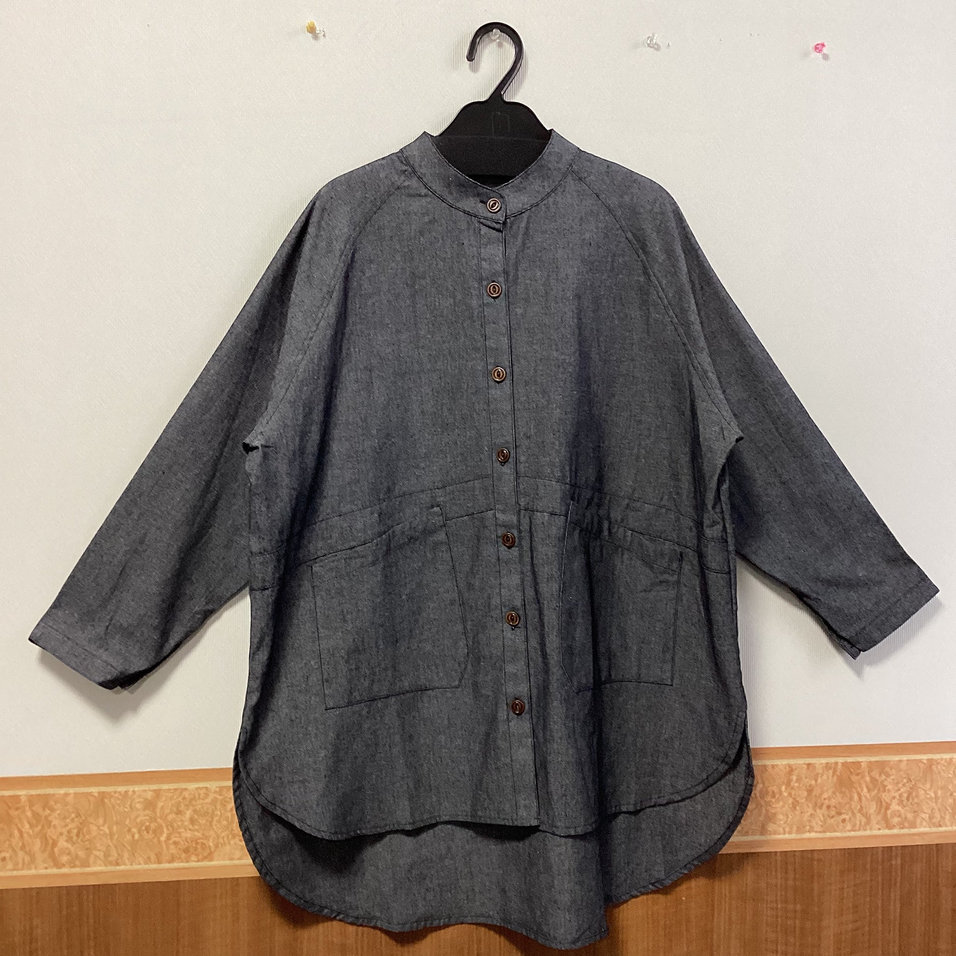 ハリのある薄手のデニム生地で長袖丈のシャツジャケットです。