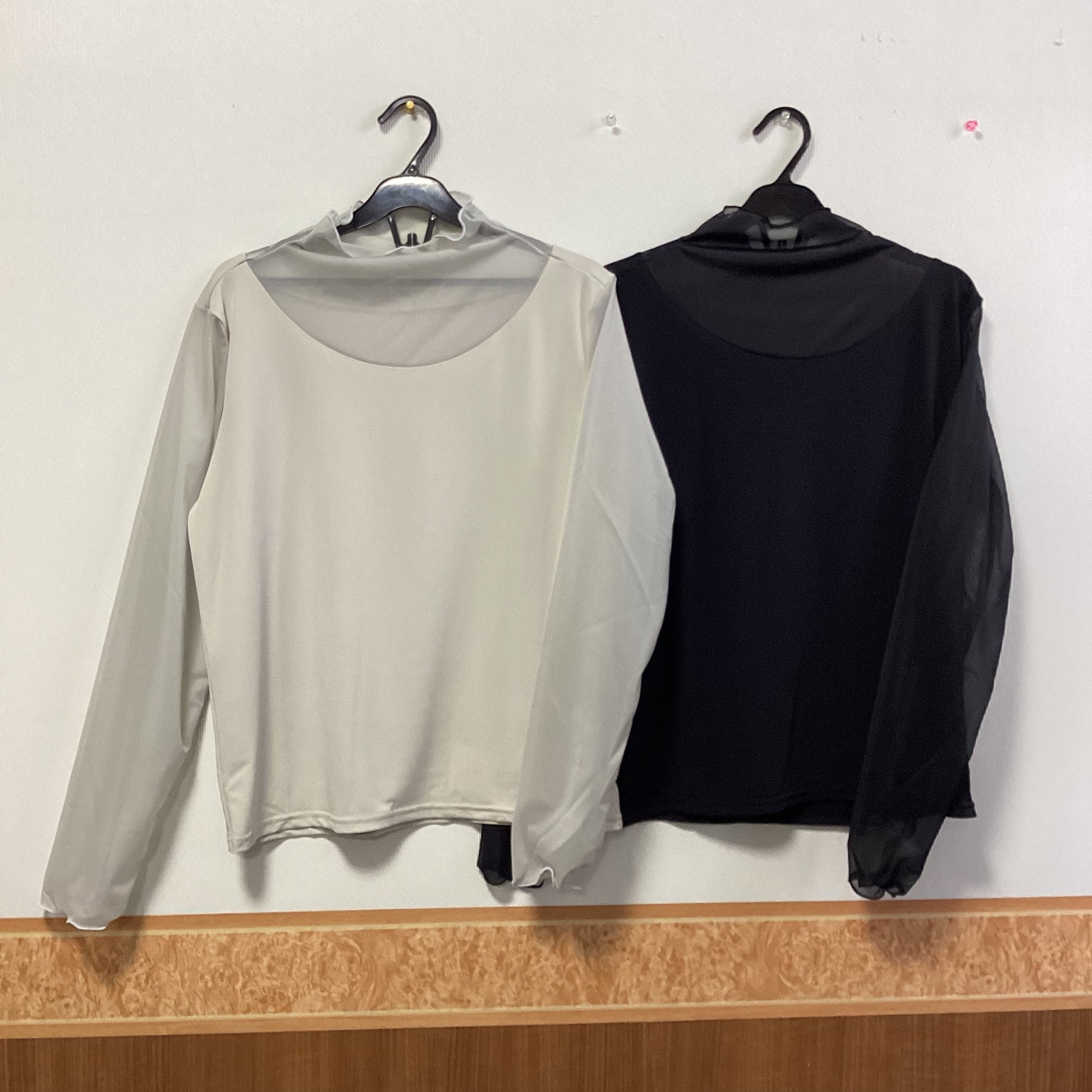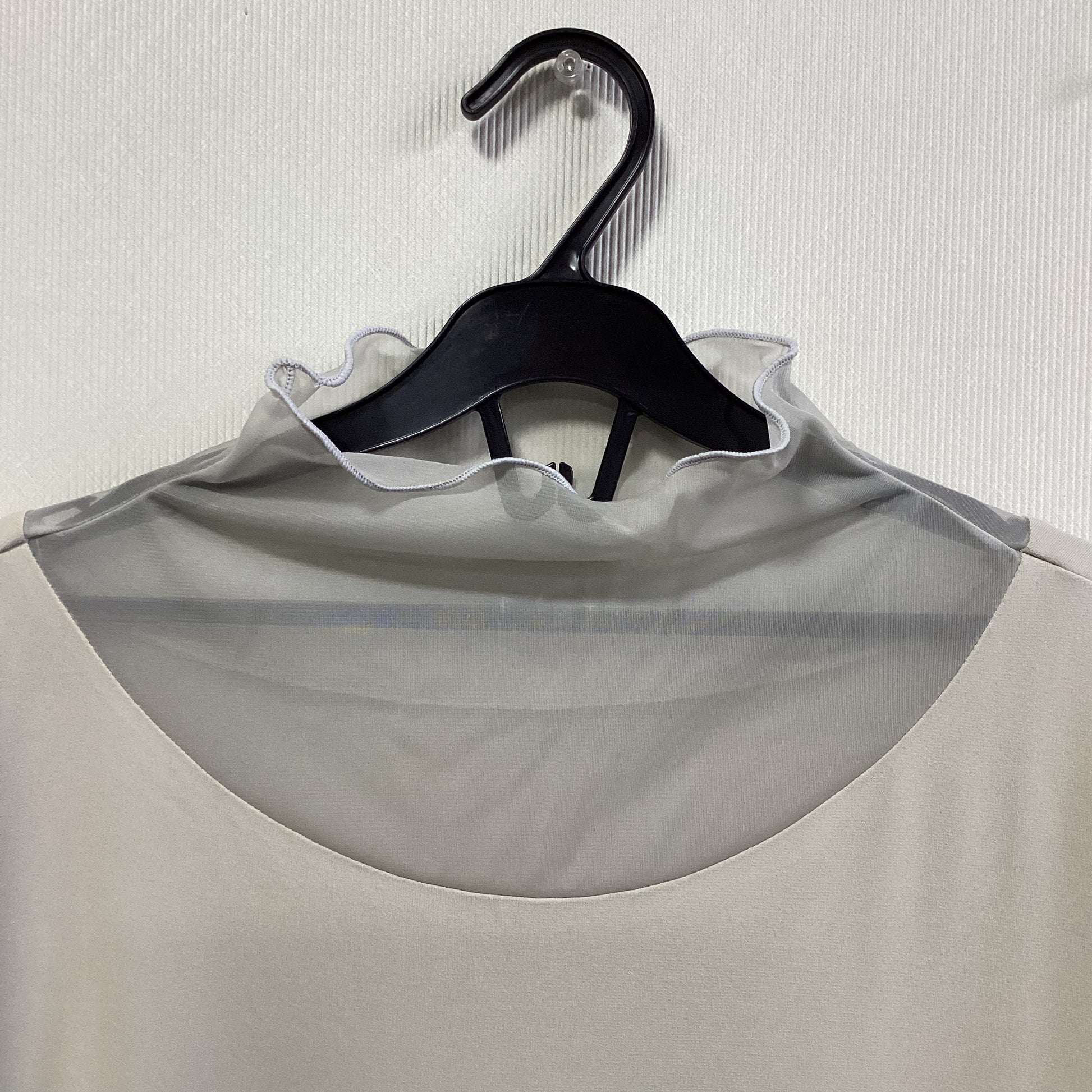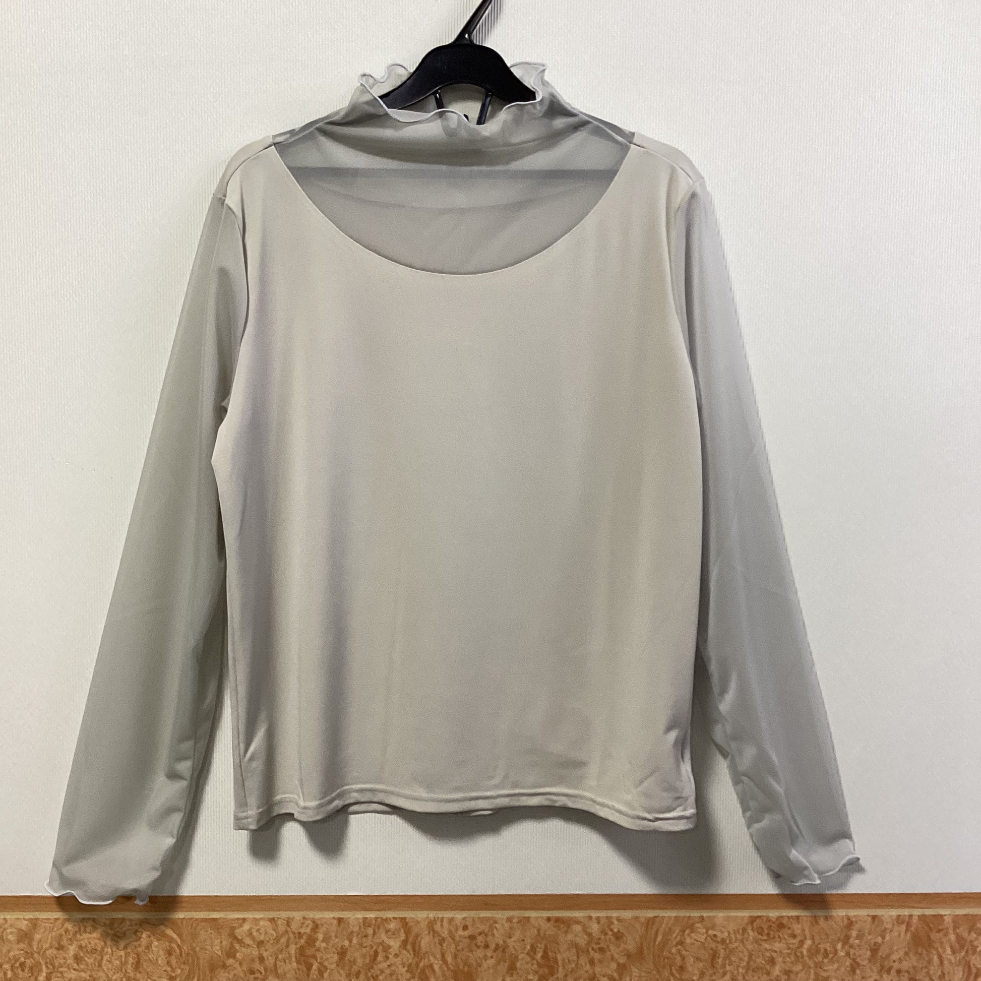 首元と袖部分が透け感のあるシアー素材で切り替えデザインの長袖カットソーです。