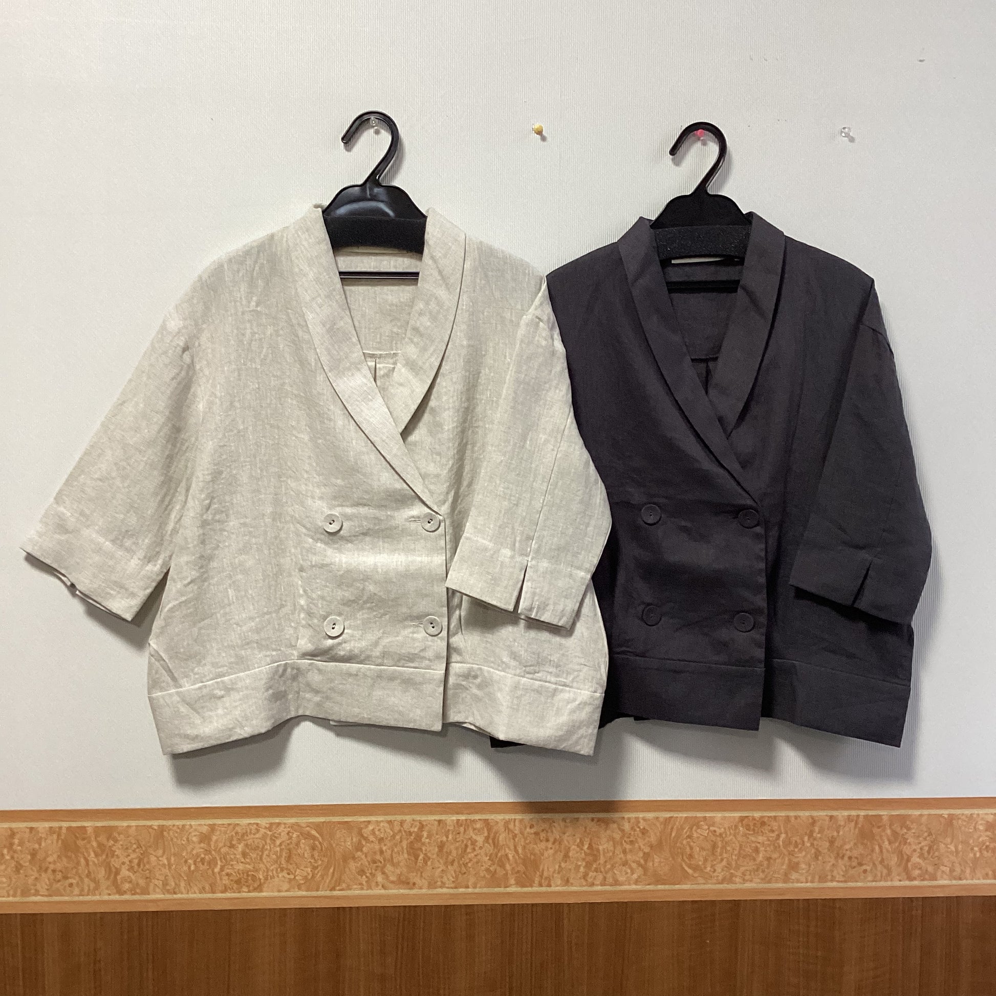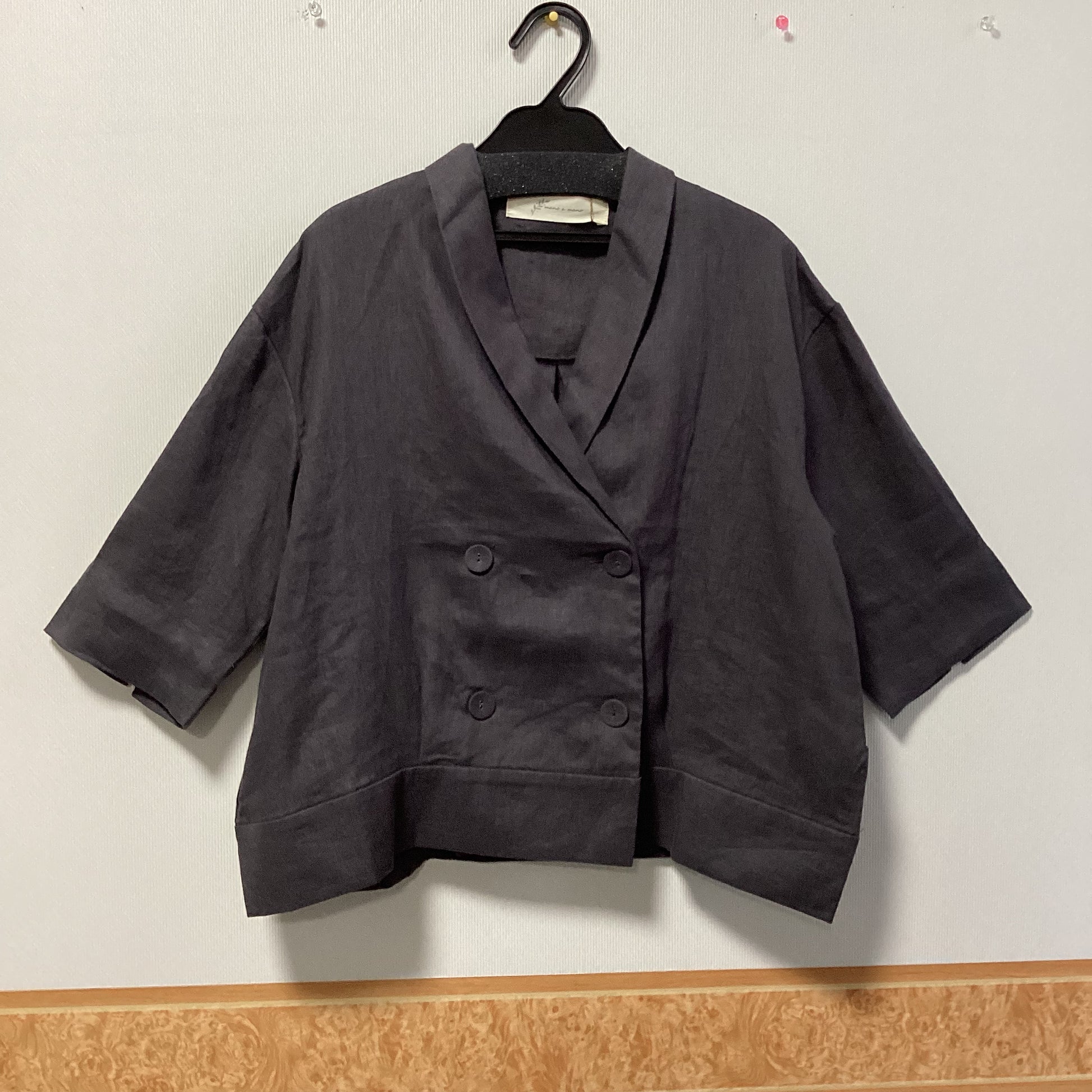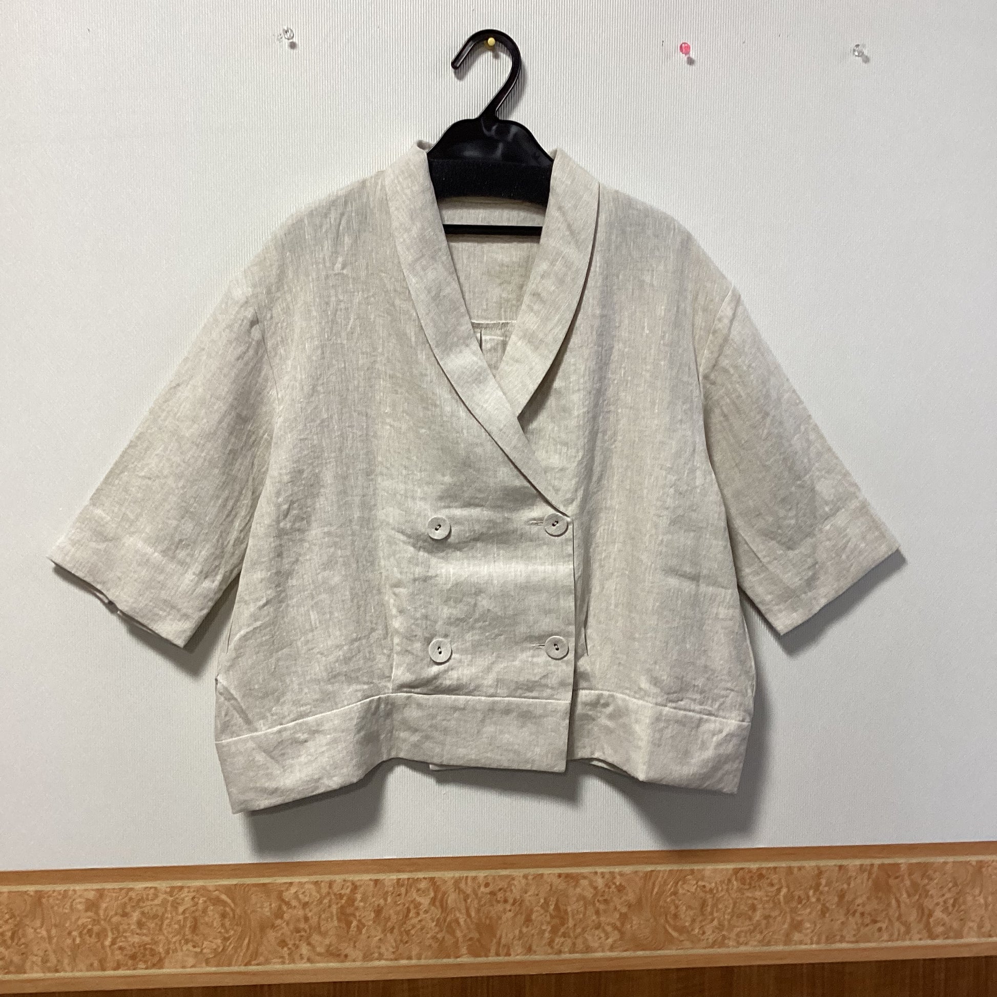 ショールカラーでゆったりシルエットの七分袖ジャケット。