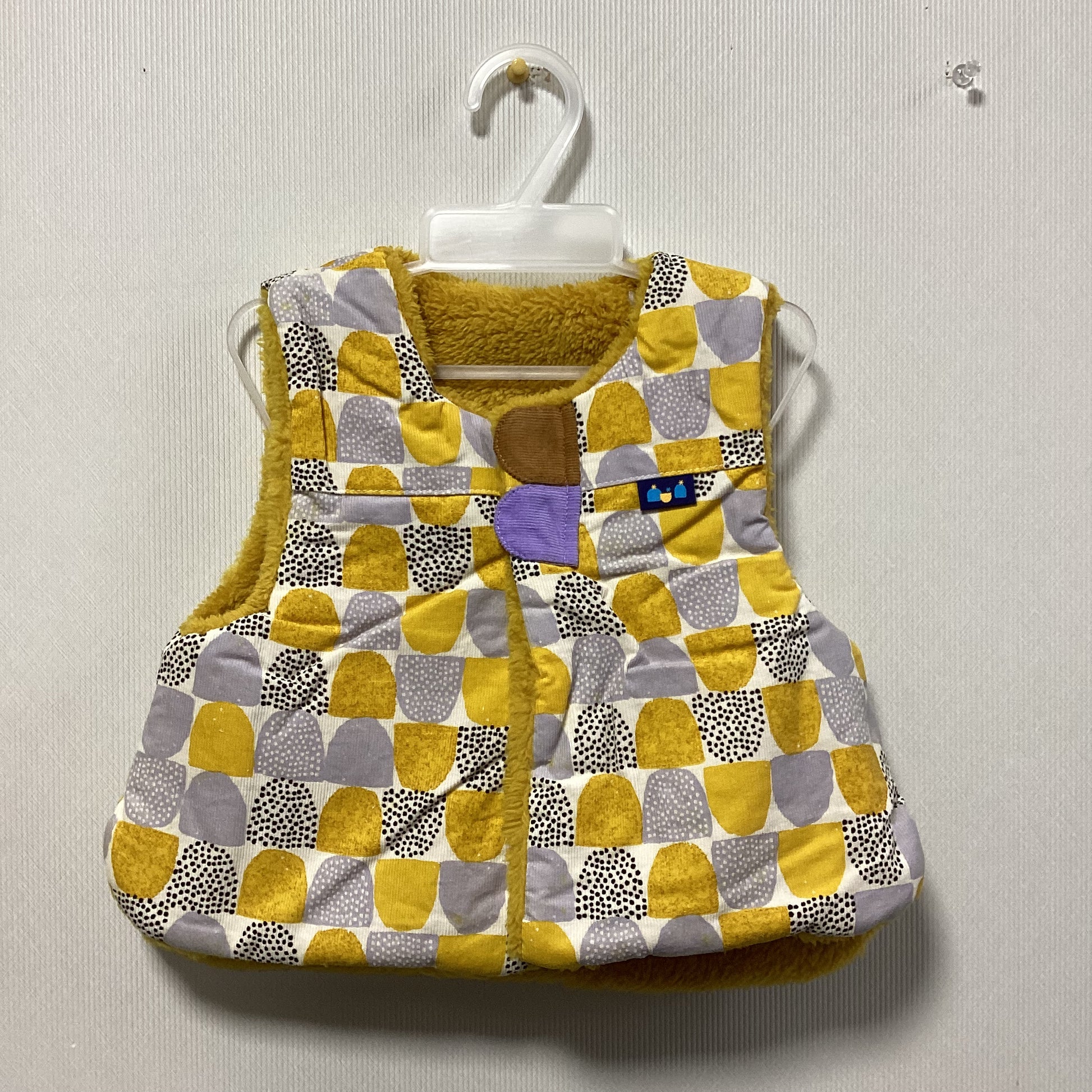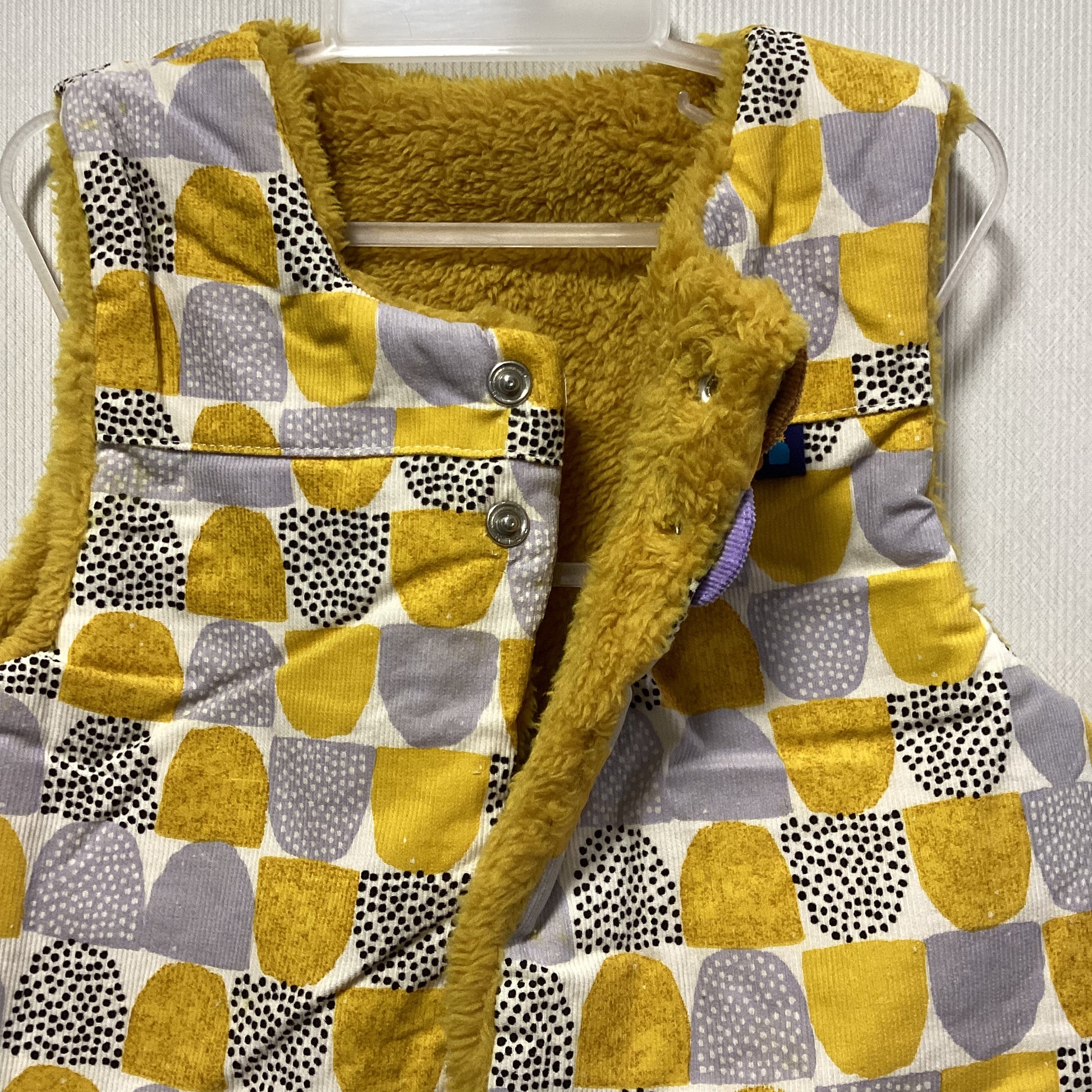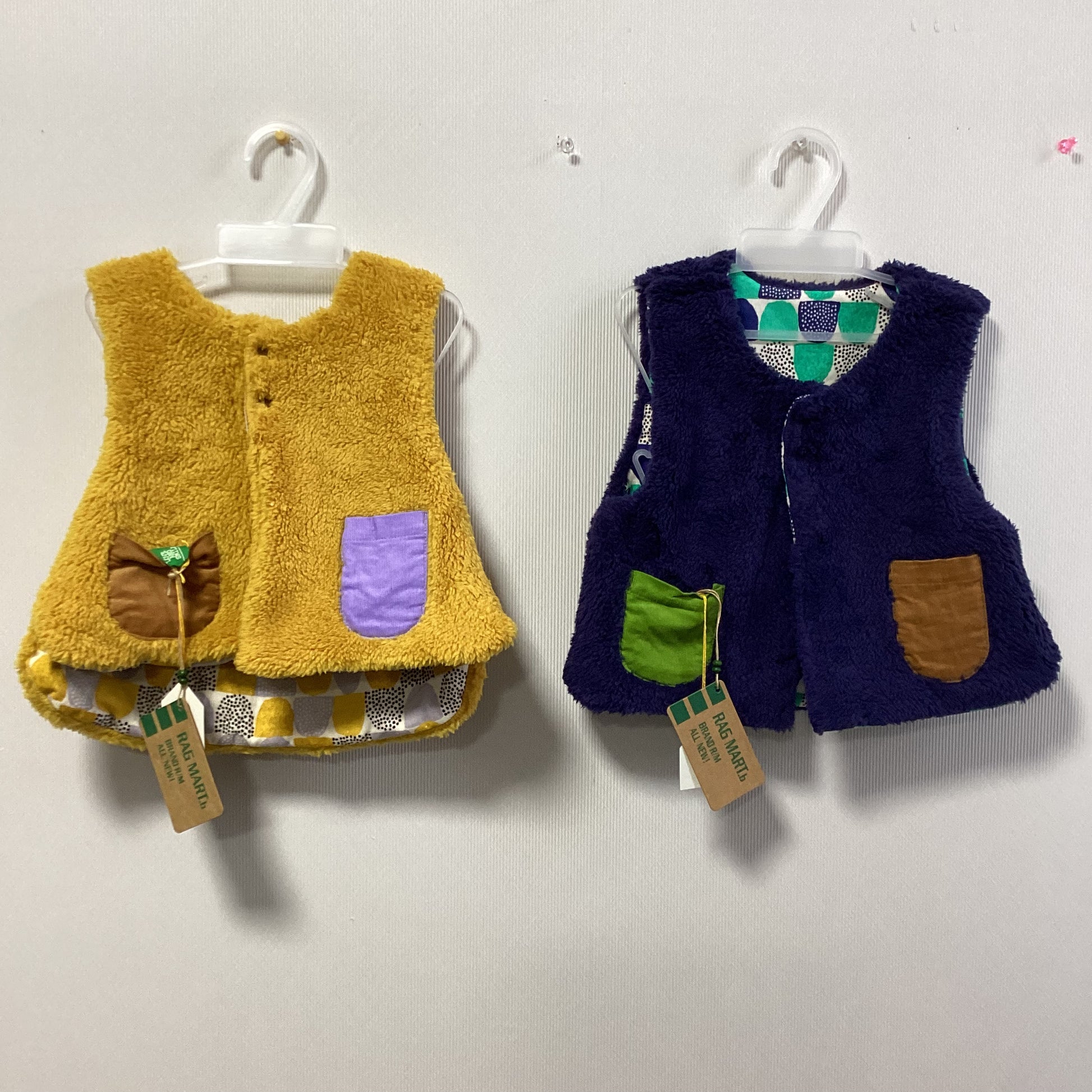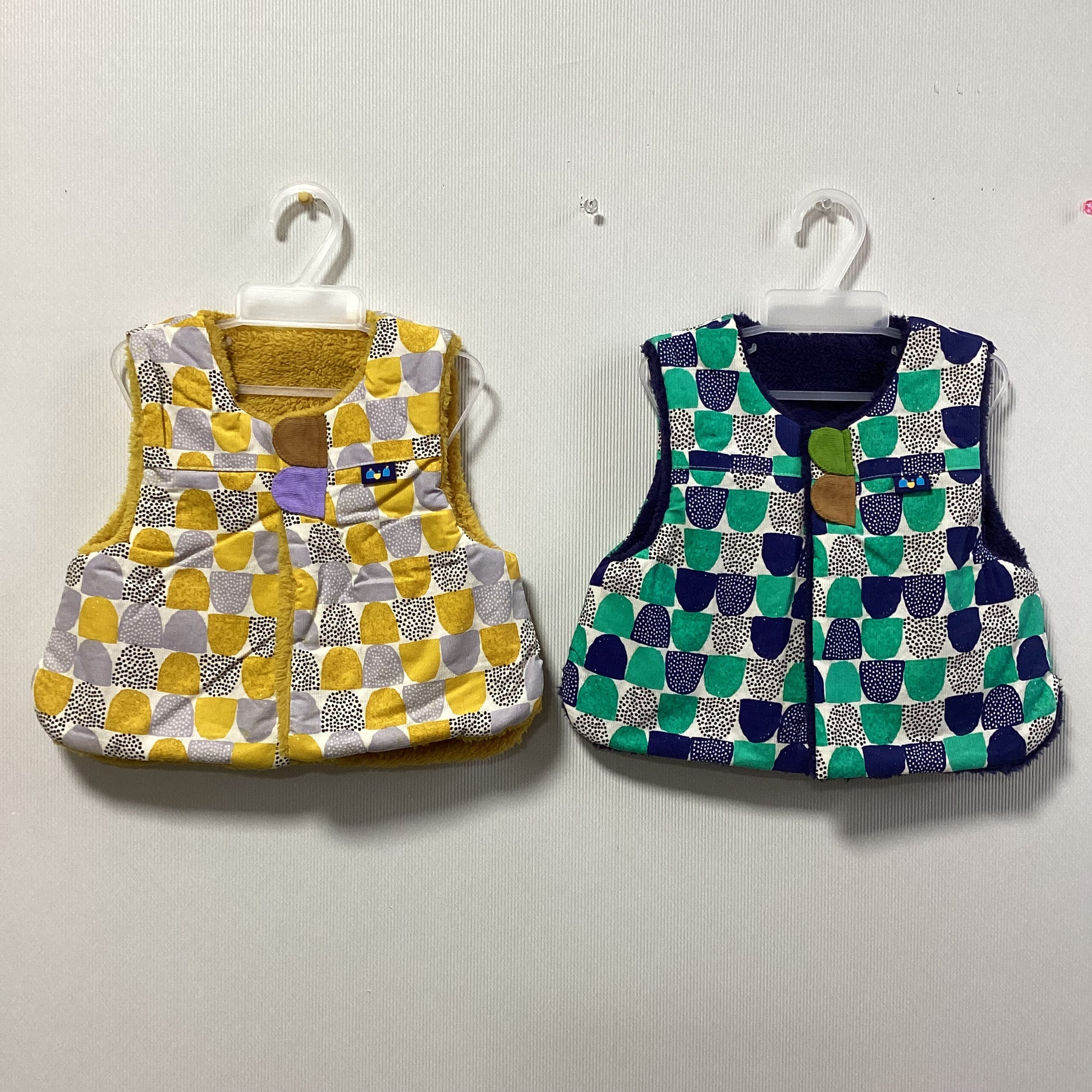 可愛いらしい総柄でリバーシブル仕様のボアベストです。