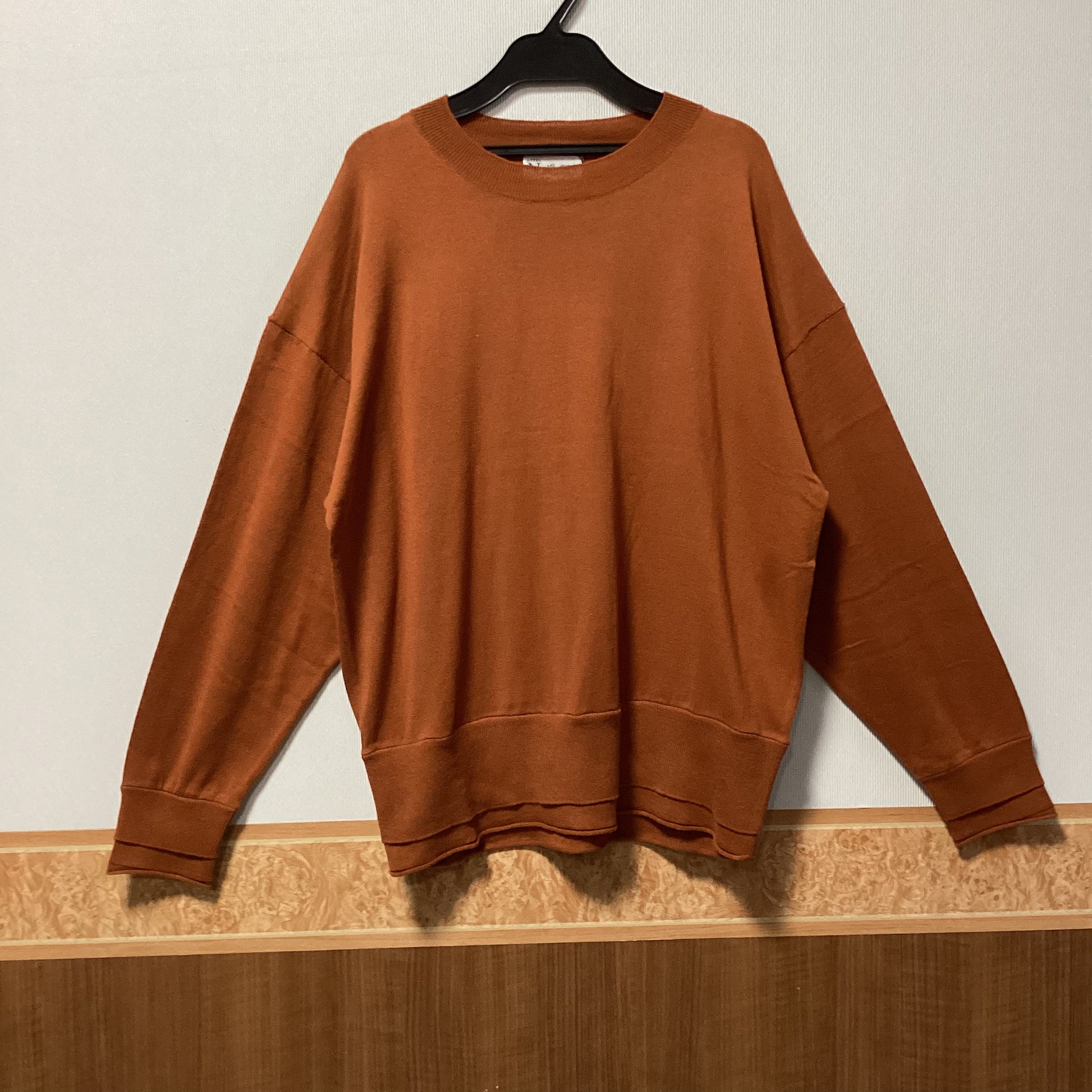 袖口と裾が二重仕立てで重ね着したようなデザインの長袖セーターです。